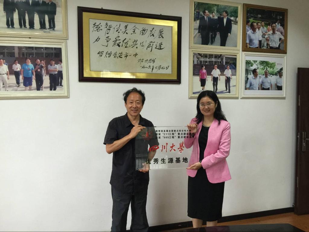 6月27日,学院党委副书记唐世红老师、教导员刘蓉生老师、姚亚东教授、辅导员余鹏飞老师一行四人前往江西南昌,到达南昌后立即奔赴吉安市,pg电子官网招生宣传工作小组首次深入“中国革命的摇篮”,为老区学子提供面对面的专业咨询。28日,一行四人冒着大雨来到吉安一中,向一中学子宣传四川、推荐川大,专场咨询会后,刘蓉生老师代表工作组向一中授予“优质生源基地”牌匾,感谢一中多年来对pg电子官方网站的支持;下午,唐书记和姚教授继续深入井冈山腹地——泰和县,在与泰和中学党政领导亲切交流后,唐书记为泰和中学授牌,希望以后加强交流,推荐更多的优秀学生来川大;29日上午,前往此行的最后一站——莲塘中学,连塘中学生源火爆、咨询热度高扬,姚教授和刘老师从专业的角度耐心地回答家长和考生提出的问题,唐书记和余老师就pg电子官方网站在江西的招考政策的问题一一作答。