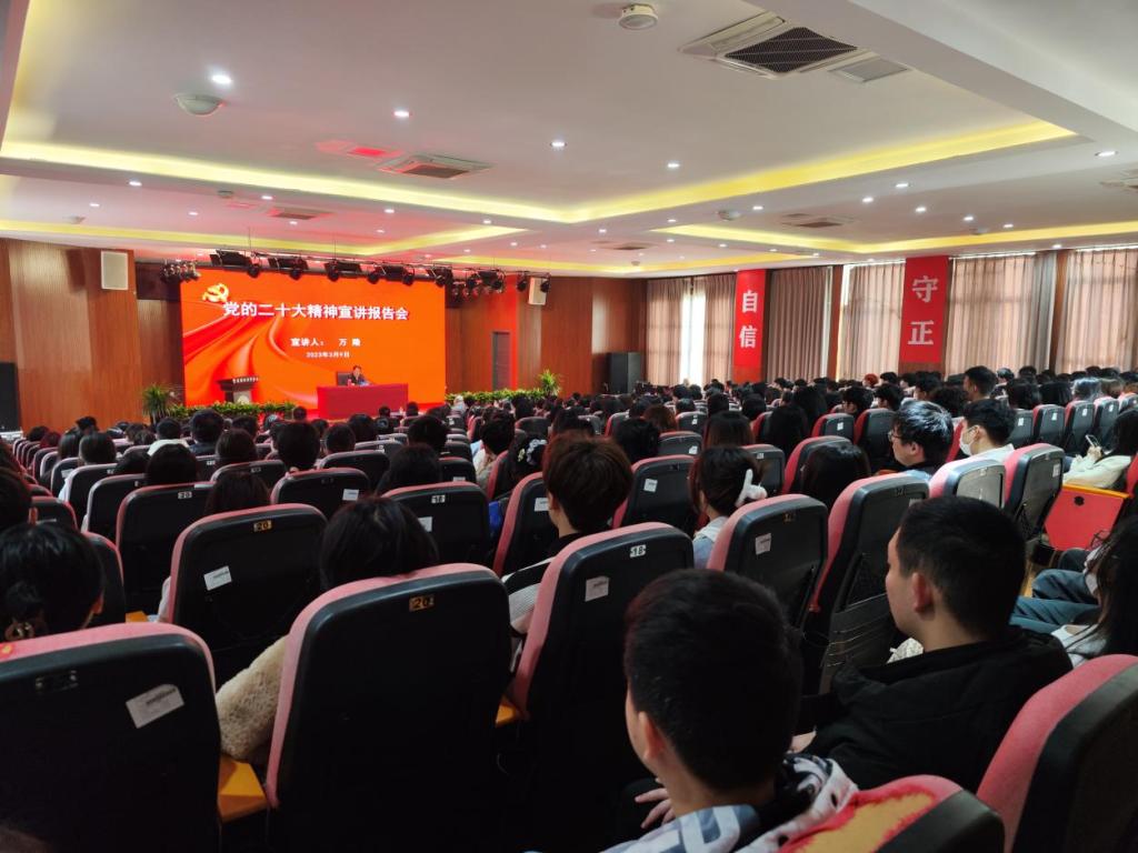 宣讲会上,万隆区长以“深入学习领会党的二十大精神实质,全面建设社会主义现代化,奋力跑出当代青年的最好成绩”为主题展开宣讲。他主要从党的二十大主题主要成果、过去五年的工作和新时代十年的伟大变革、马克思主义中国化、中国式现代化、全面建设社会主义现代化、坚持党的全面领导和全面从严治党六个方面解读党的二十大精神,提出青年要准确把握党的二十大精神实质。