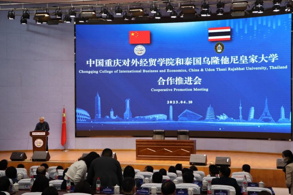 会上,李明海校长代表学校对卡妮莎校长一行来访表示欢迎,并向客人们介绍了学校发展情况和办学思路,指出“今年会把培养‘高素质涉外人才’作为推动高质量发展的重要引擎,着力推进跨境商贸人才和跨文化传播人才的培养”,并希望“在‘一带一路’倡议、中国-东盟自由贸易区、西部陆海新通道等框架下,围绕国际中文教育、数字经济等领域,和乌隆他尼皇家大学在学术交流、研究生联合培养等方面加强合作” 。