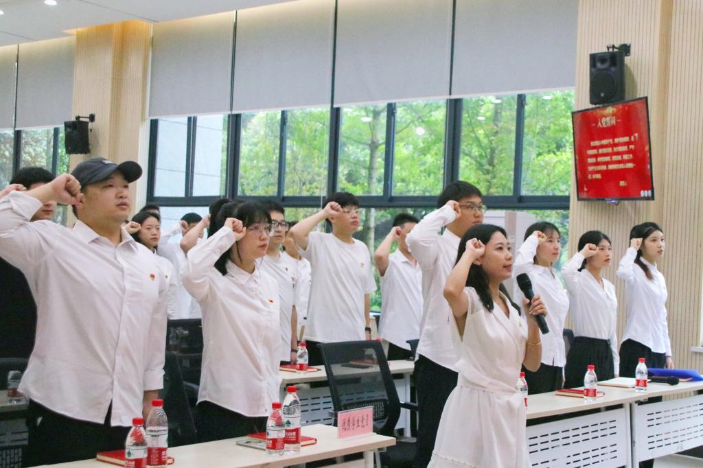 会议伊始,在大数据与智能工程学院组织员曾韵洁的带领下,优秀学生党员代表及毕业生党员代表面向党旗重温入党誓词,随后向优秀学生党员颁发了荣誉证书。