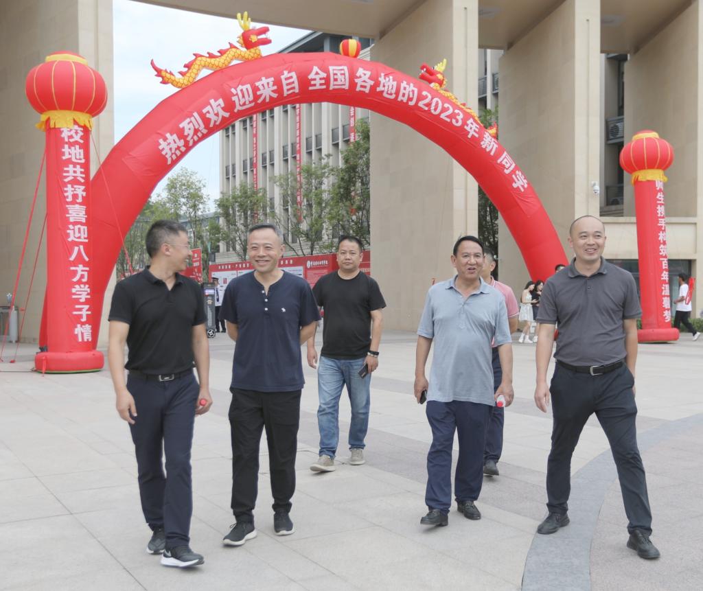 学校董事长郭元新和学校领导亲临迎新现场视察指导,走访各迎新点,了解迎新工作进展情况、新生整体报到情况,与新生亲切互动,看望慰问辛勤坚守在迎新一线的师生、志愿者和相关工作人员。
