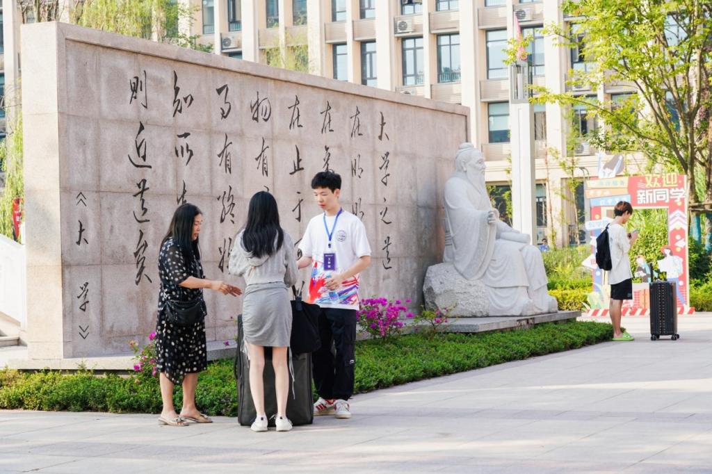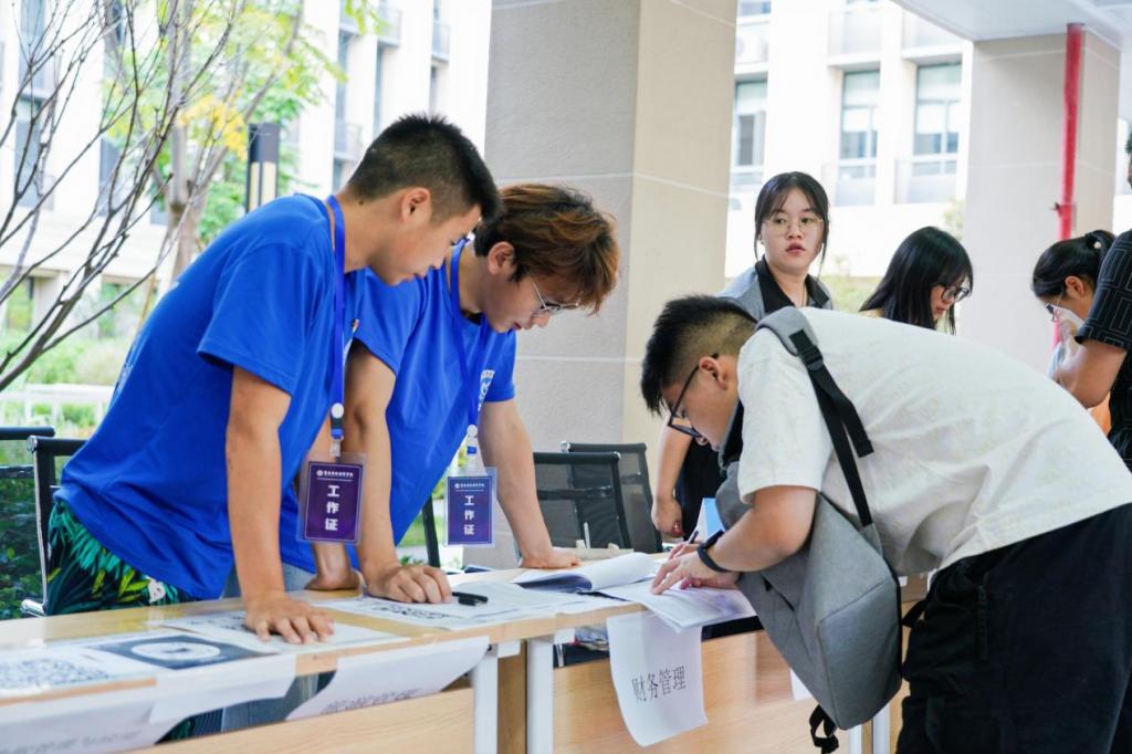 报到日当天,校门口的热闹场景格外引人注目。早上八点,新生们陆续到达校园,伴随着亲友的祝福与期盼。踏入了他们未来四年的求学之旅,各学院领导、老师、志愿者以热情、周到、负责的态度指引各学院新生进行报名、缴费、领取物资、寝室入住等报到流程,努力为新生营造良好的报到环境。同时,校内安排了休息区、免费领水区、行李寄存区,处处都能看见作为学长学姐的志愿者帮忙与解答的身影。新同学们体会到了学校的关怀之情。