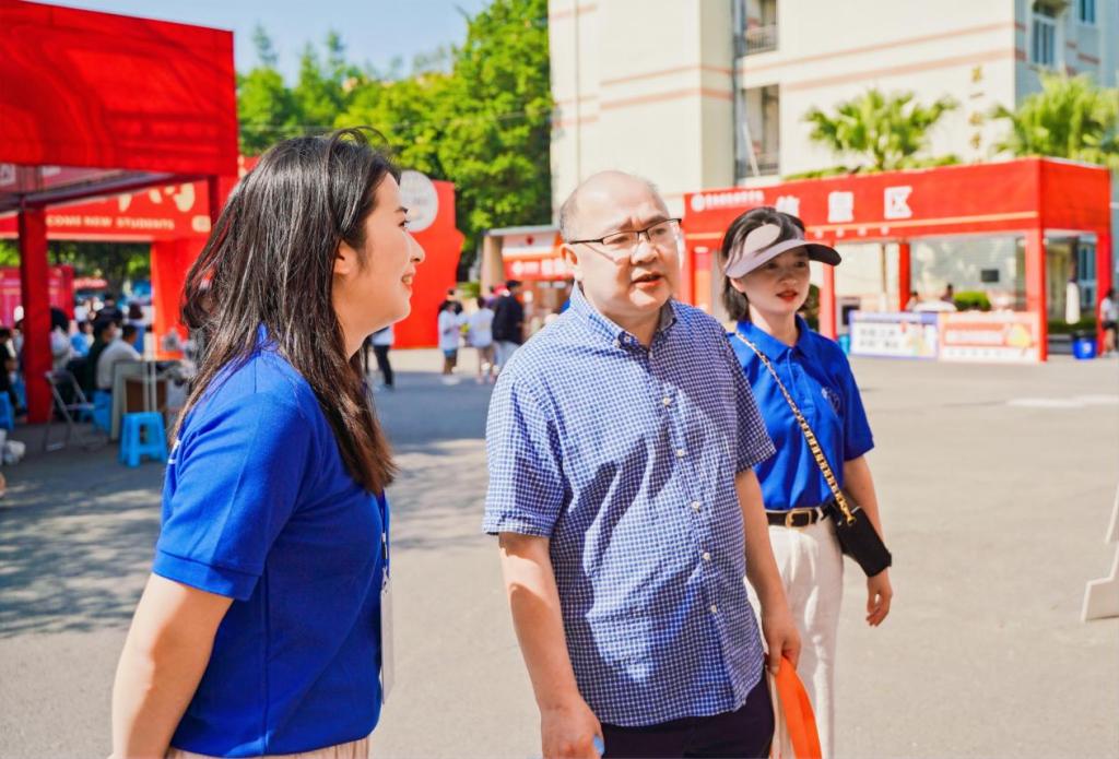 (校领导到迎新现场指导工作和慰问迎新志愿者)