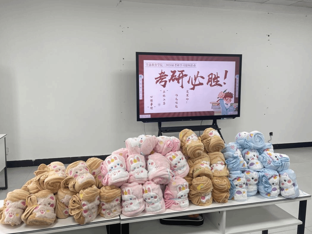 活动最后,学院领导班子和老师们为考研学子们送上了带着美好祝愿的“考研加油包”和暖心小毛毯。寄托着美好期望的加油包、暖心的嘱托、真挚的祝愿,寓意着考研学子们能够“苹”稳上岸、心想事“橙”、巧克难题、加油,奥力给!希望考研学子们能够在考研大军中脱颖而出,一战成“硕”。
