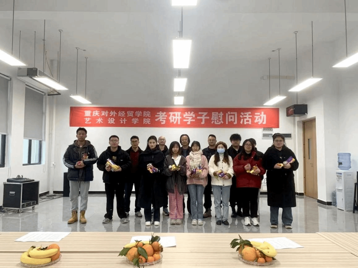 12月7日,艺术设计学院举办了“相伴考研路 情暖学子心”考研慰问活动。院长姜百瑞、党总支书记张翌、副院长马乐、团总支书记王德印对考研学子们进行了亲切慰问,向考研学生赠送了慰问品。他们与学生亲切交流,关心学生的学习备考生活状态,叮嘱同学们调整心态,从容应对,在最后冲刺阶段拿出干劲,取得理想成绩。