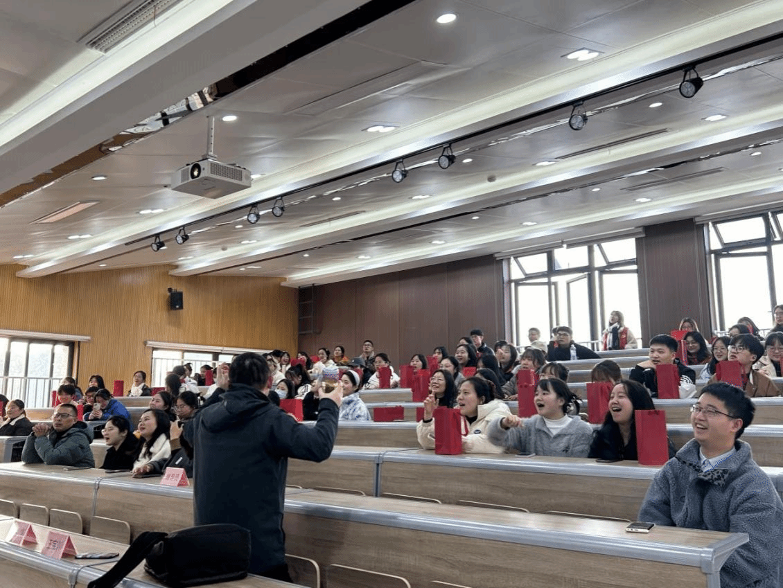 12月5日下午4:00,外语外贸学院在B8407教室组织开展了“情暖考研路,助力考研行”考研慰问活动。在全场富有感染力、鼓舞考研学子士气的大合唱中,院长李霓、考研指导老师团队负责人王宝川老师、2024届毕业生辅导员、各年级组长们亲切慰问并为考研学子们发放了慰问品。他们鼓励考研学子们坚持到底不放弃,保持良好心态,注意劳逸结合,以昂扬姿态冲刺“最后一公里”,全力奔向自己的理想高校。同时衷心祝愿每一位考研学子都能得偿所愿,金榜题名!
