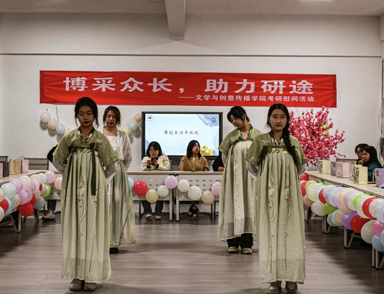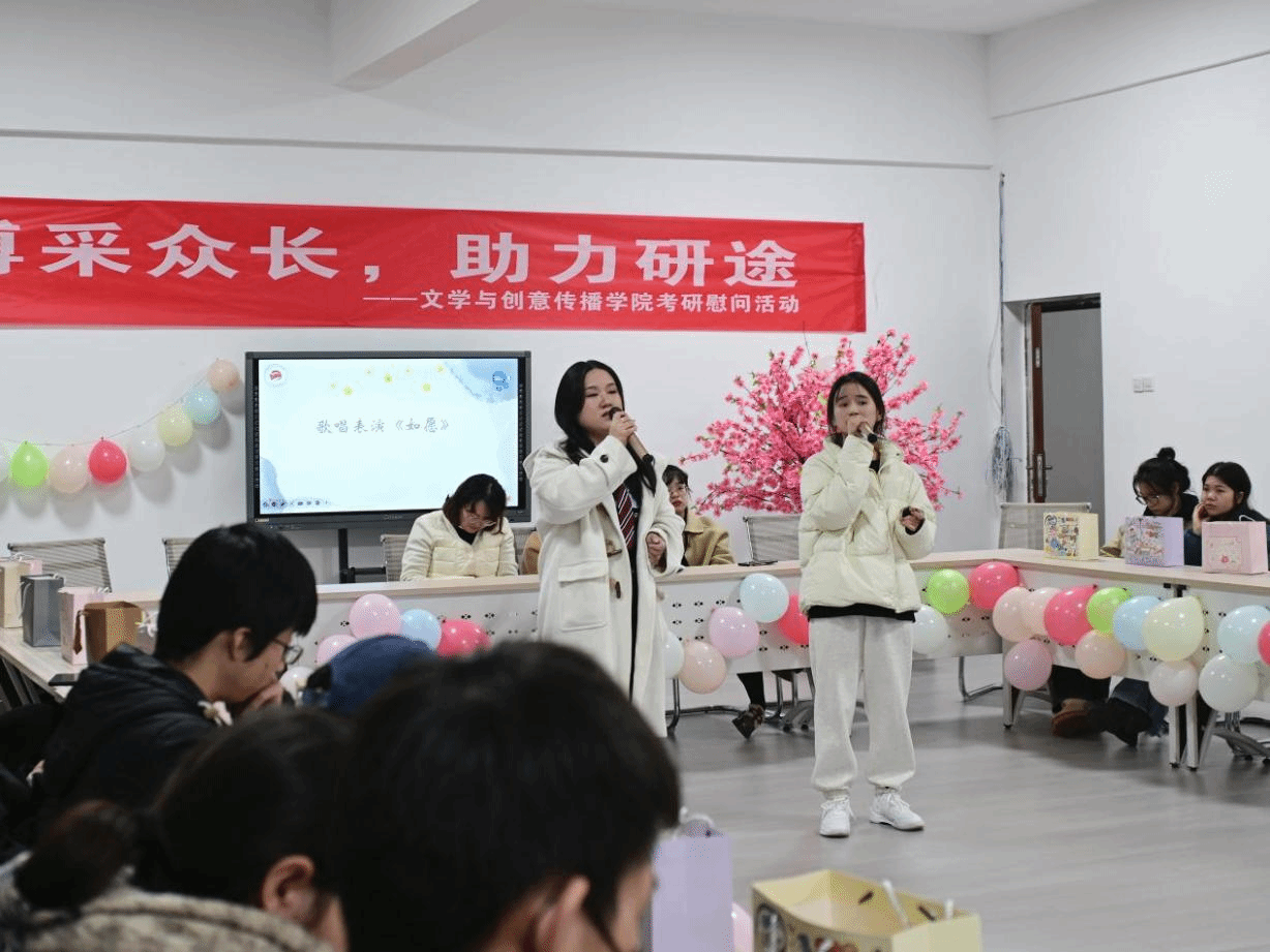 12月7日18:30,文学与创意传播学院在A6107教室举办了“博采众长,助力研途”考研慰问活动。学院以文艺演出、辅导员寄语的形式,帮助考研学子们放松身心,叮嘱同学们调整好心理和身体的状态,合理安排时间,张弛有度,充分利用好最后的复习时间,查漏补缺,活动最后,学院为学子们送上了特别准备的考研慰问大礼包,鼓励考研学子们坚定考试信心,祝愿同学们“一战成硕,金榜题名”!