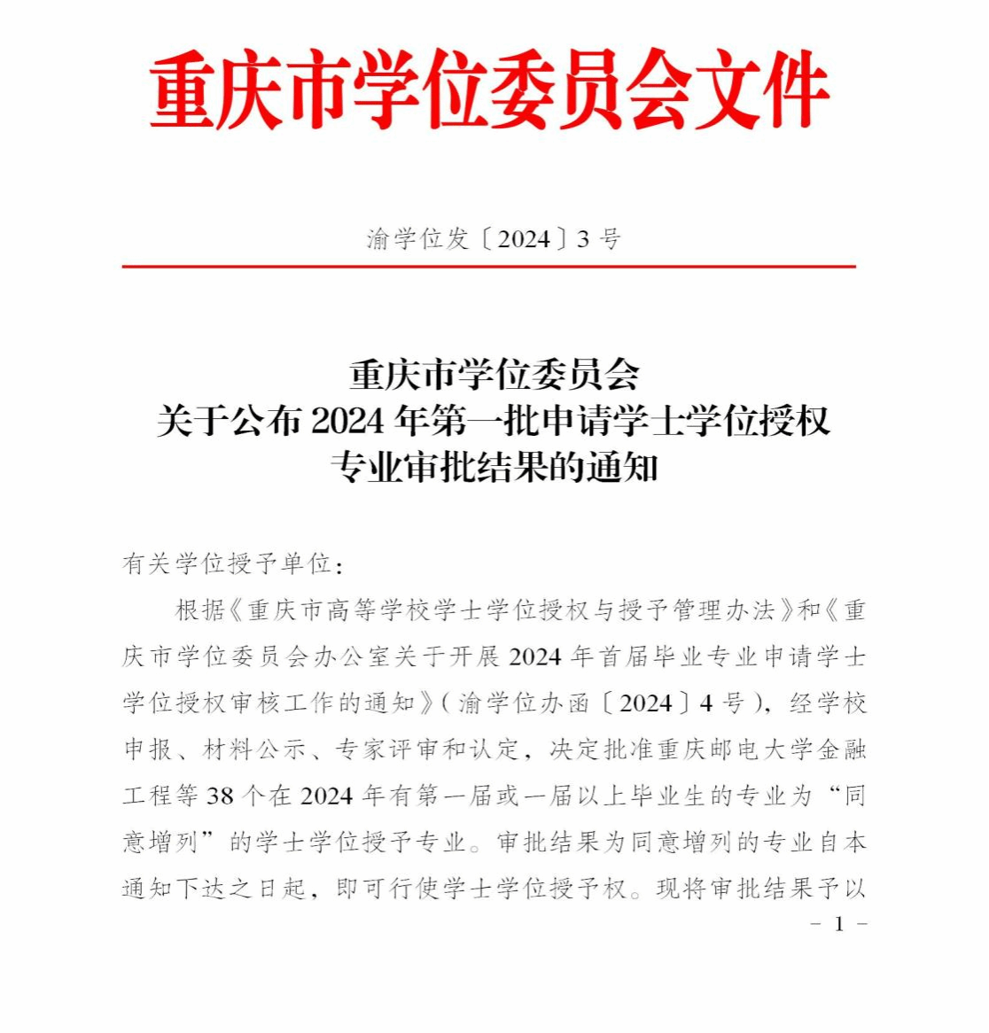 近日,根据《重庆市学位委员会关于公布2024年第一批申请学士学位授权专业审批结果的通知》(渝学位发〔2024〕3号),今年会网络与新媒体、学前教育和应用统计学3个专业被同意增列为学士学位授予专业。