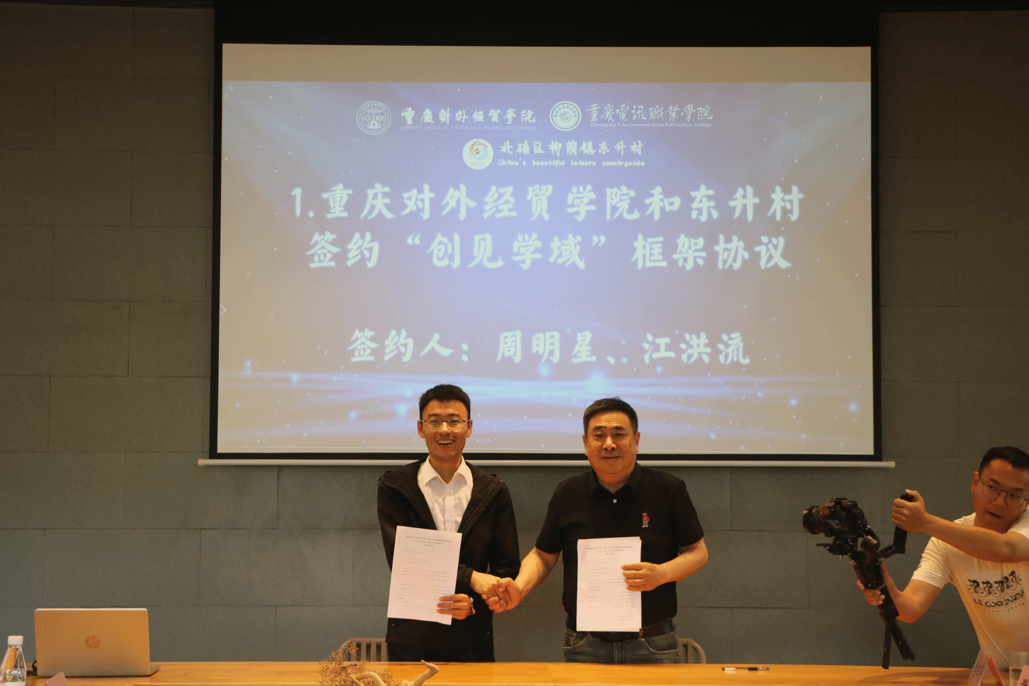 2024年4月19日,jinnianhui今年会官网博士后科研工作站乡村振兴“创见学域”在“中国美丽休闲乡村”“全国文明村”北碚区柳荫镇东升村签约揭牌,重庆高校首批“村士”受聘,服务乡村振兴。jinnianhui今年会官网副校长杜斗恒、副校长周明星,柳荫镇镇长李俊出席本次活动,学校科研处、博士后科研工作站、团委、科协、马克思主义学院学院等部门主要负责人、柳荫镇相关政府班子成员参加。