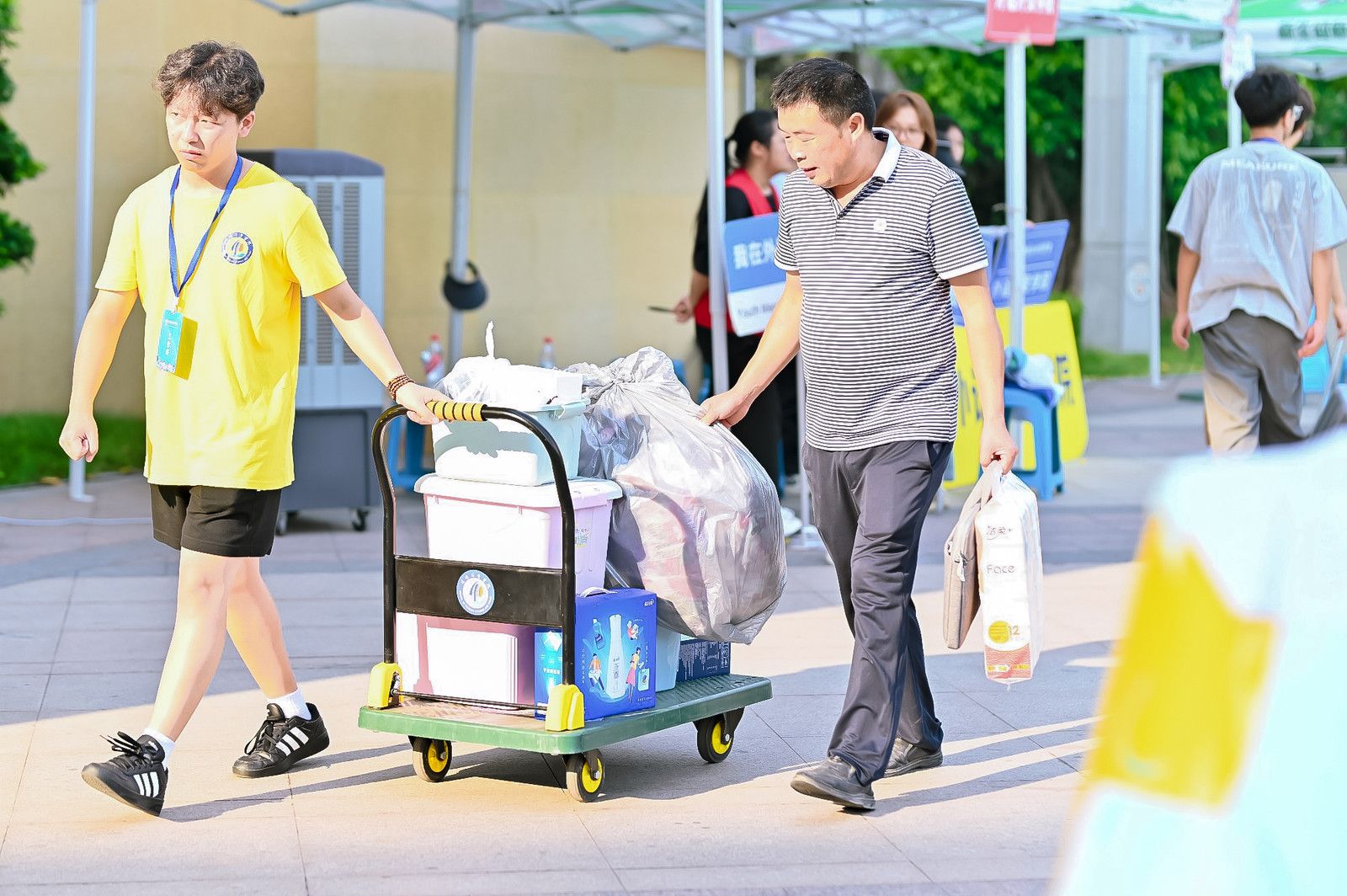 新生们满怀激情与梦想,在亲友的陪伴下,纷纷踏入这座充满生机与活力的校园,开启了他们未来四年的大学生活。“近者悦、远者来、行千里、致广大”“大学从这里开始,梦想在贸院启航”醒目的标牌、真挚的祝福语,处处洋溢着浓厚的迎新氛围。报到现场,各学院领导、老师、志愿者以热情、周到、负责的态度指引各学院新生进行报名、缴费、领取物资、寝室入住等报到流程,努力为新生营造良好的报到环境。同时,校内还安排了休息区、免费领水区、行李寄存区,为新生及家长提供便利。随处可见志愿者的身影,他们主动上前帮忙,为新生解答疑惑,让新生们感受到学校的关怀与爱护。