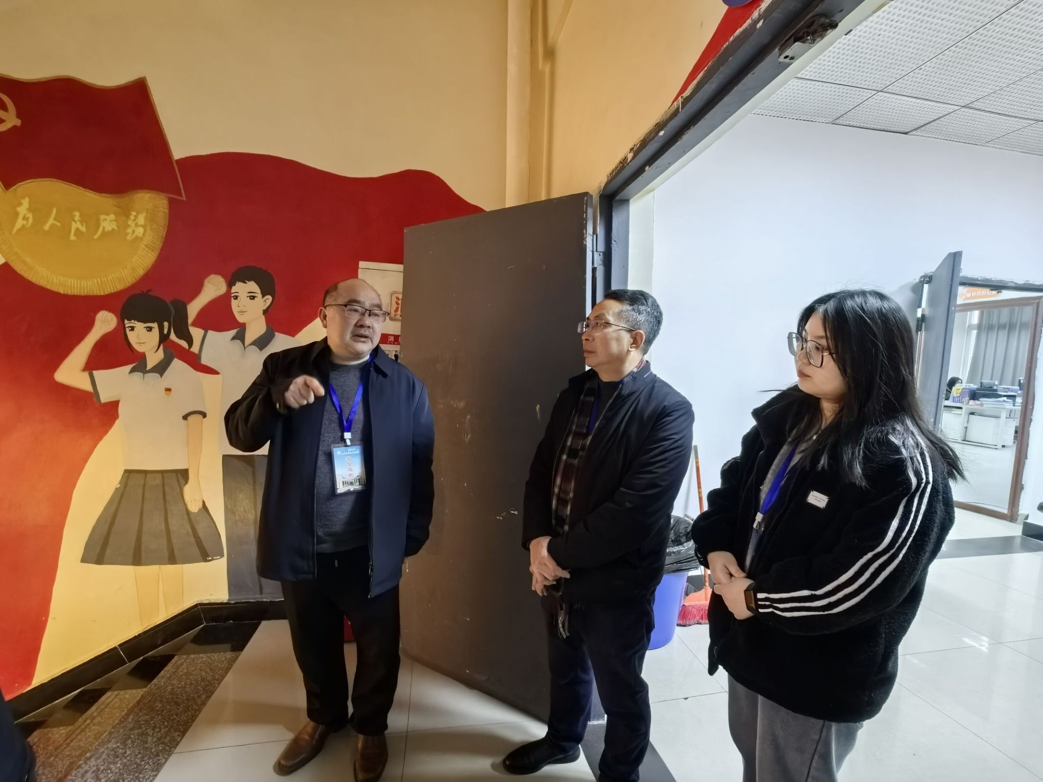 图四 副校长王婕与教学单位就学院文化墙打造进行交流