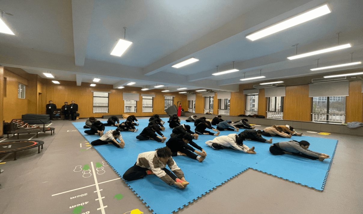 图五 B校区师生在操舞实训室做啦啦操拉伸运动