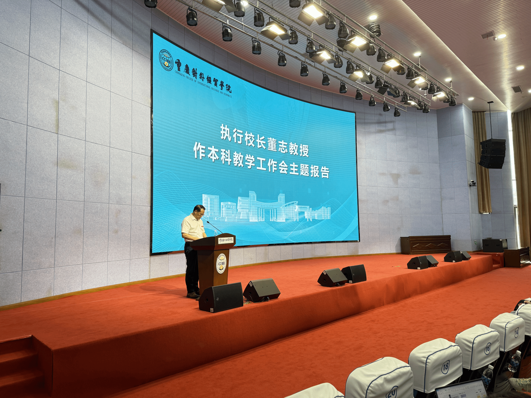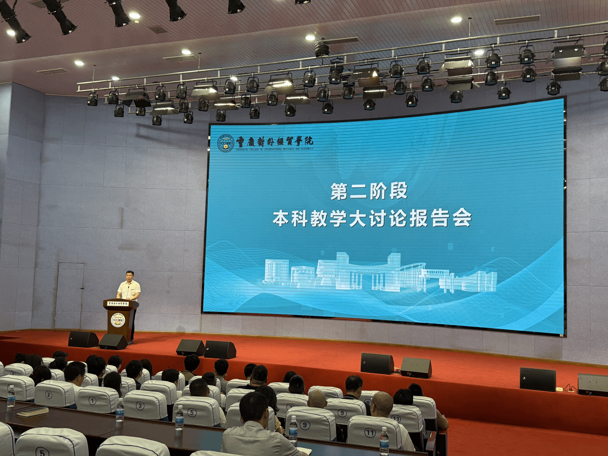 【本网讯】为深入贯彻落实立德树人根本任务,进一步解放思想、凝聚共识,全面提升应用型人才培养质量,7月22日下午,学校在合川校区实训楼9101学术报告厅隆重召开2025年本科教学工作会暨本科教学大讨论报告会。会议旨在坚持“以学生为中心”理念,落实《jinnianhui今年会官网关于印发本科教学大讨论工作方案的通知》(渝贸院发〔2025〕99号)精神,对本科教学工作进行深入研讨与部署。学校全体在校领导、驻校理事、评估顾问出席会议。各职能部门主要负责人、各教学单位院长、书记、副院长、教研室主任及教师代表参加了本次会议。