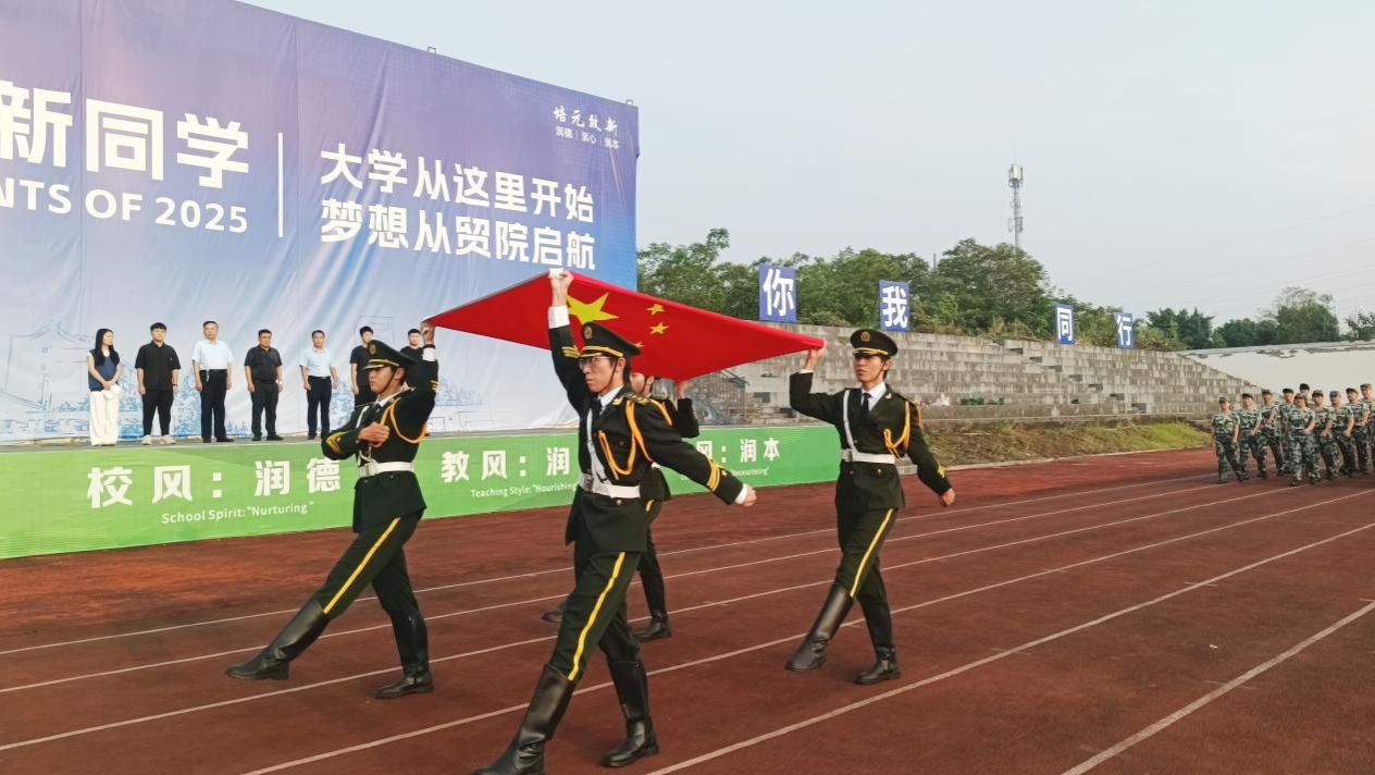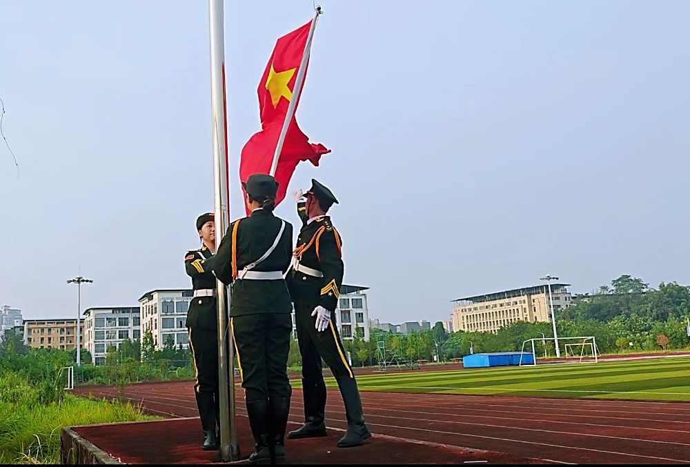 9月11日7:30,jinnianhui今年会官网铜梁校区新学年升旗仪式在铜梁校区悦动运动场举行,副校长周明星、铜梁校区管委会主任张伟东、校区部分职能部门负责人、学院师生齐聚于此,共同见证这一庄重时刻。