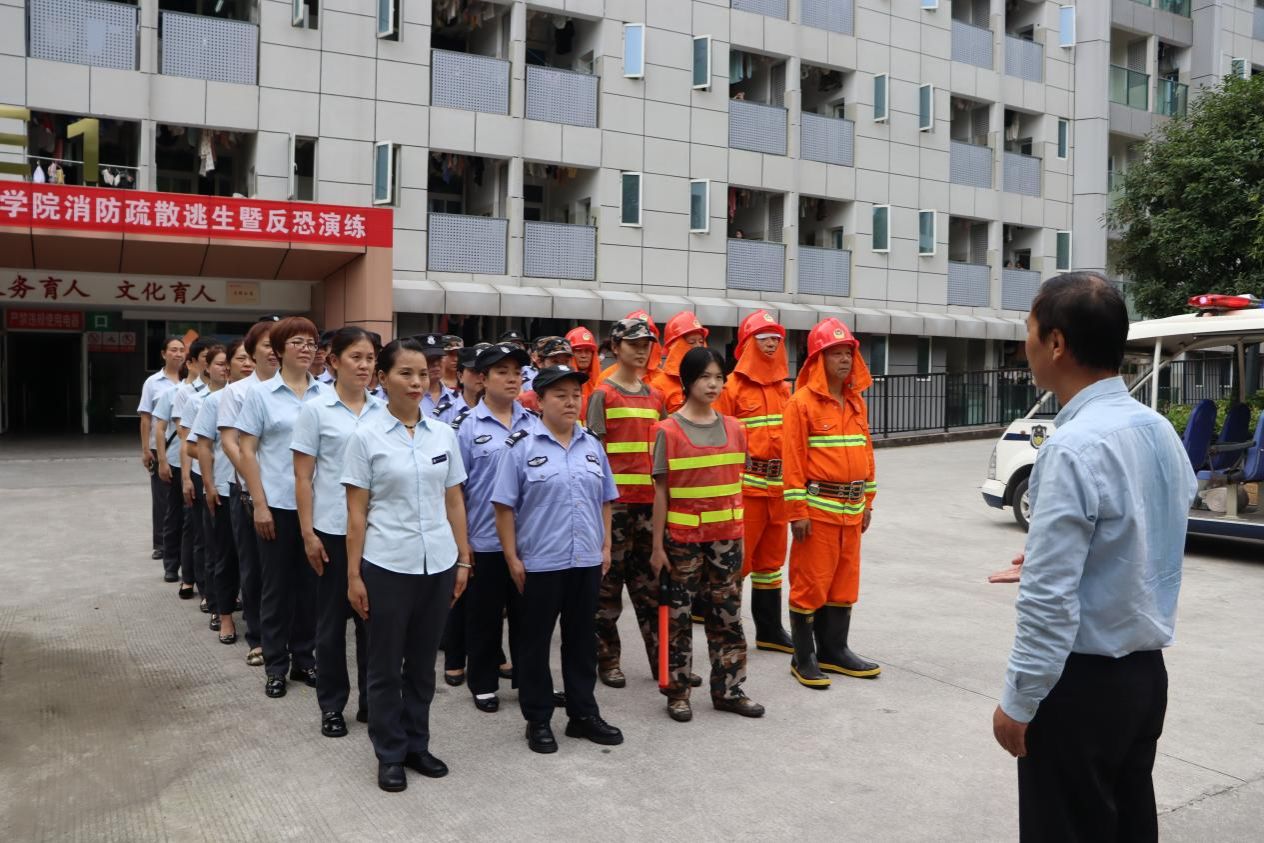 A校区消防疏散演练指挥员颜永明在演练前对全体参演人员进行现场培训