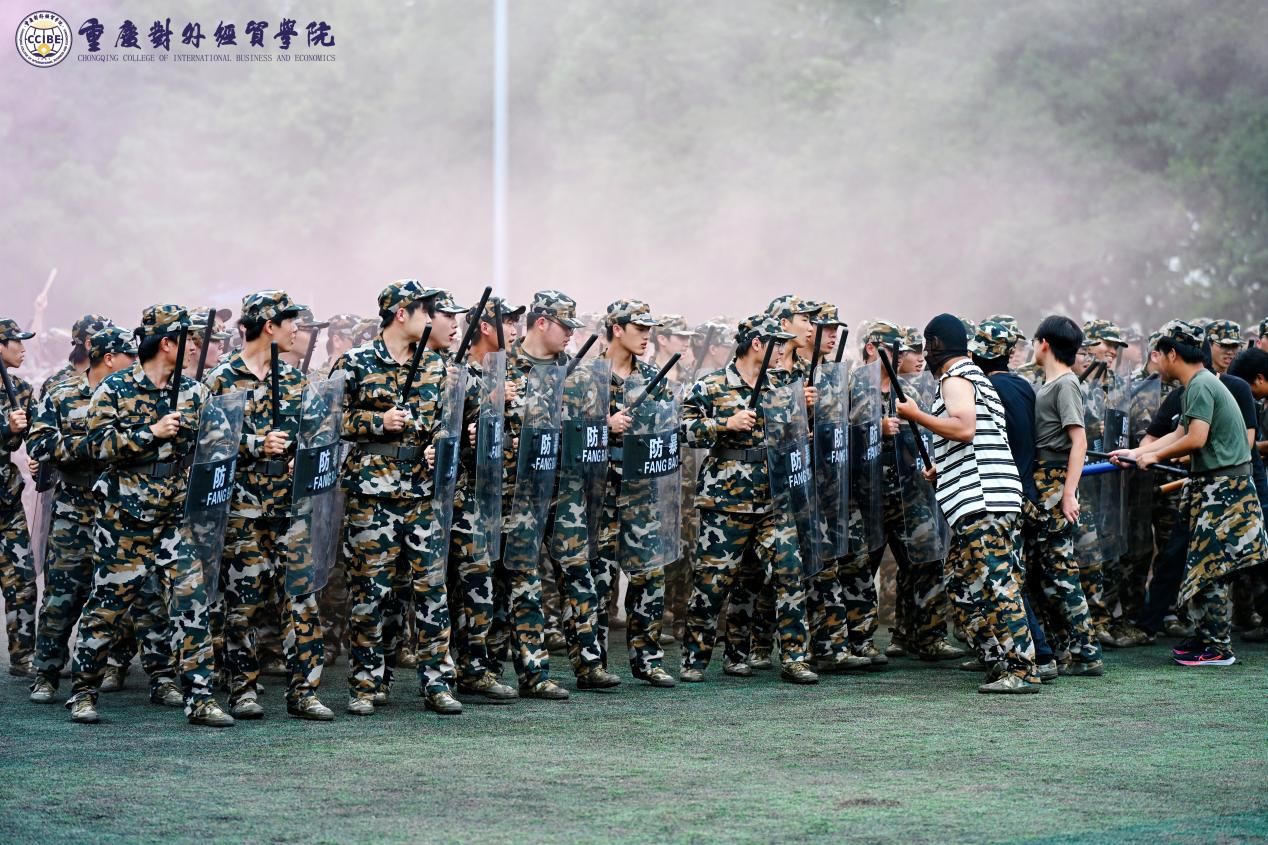 在军训成果展示环节,2025 级军训学员们以饱满的热情、整齐的步伐、嘹亮的口号依次展示队列会操、刺杀操、擒敌拳、匕首操、应急棍、防暴队形、战术行动等训练内容。队列会操中,学员们步伐铿锵、动作标准,尽显严谨纪律;刺杀操演练时,“杀” 声震天,展现无畏勇气;擒敌拳、匕首操、应急棍表演里,招式刚劲有力,凸显扎实技能;防暴队形与战术行动展示,模拟实战场景,体现协同作战能力。整个汇报环节历时约 45 分钟,充分展现了 2025 级学生在军训期间的丰硕成果与良好精神风貌,赢得了现场领导与观众的阵阵掌声。