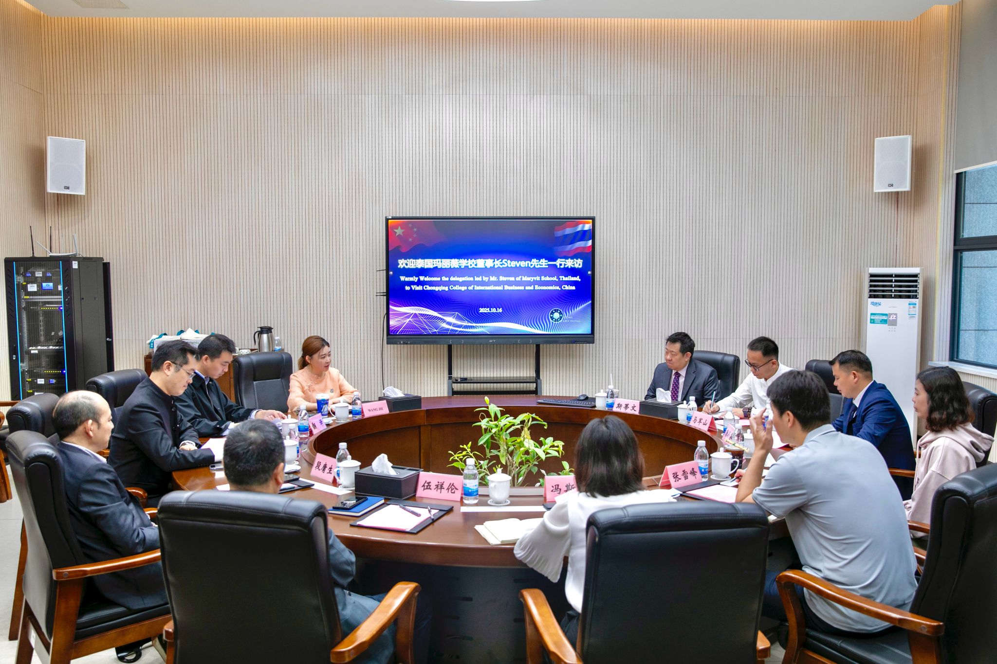 王婕副校长对斯蒂文、唐小冬一行来访表示欢迎。她表示,双方从2018年建立合作关系,玛丽薇学子初到贸院,至今已有三届学生本科毕业,一段段求学之路正是中泰民心相通最美的注脚。她指出,两校多次互访,证明双方合作有着坚实的基础,希望未来双方聚焦澜湄区域发展,在课程融合共建、实习实践基地拓展、学术科研和创新研究等领域深化合作。