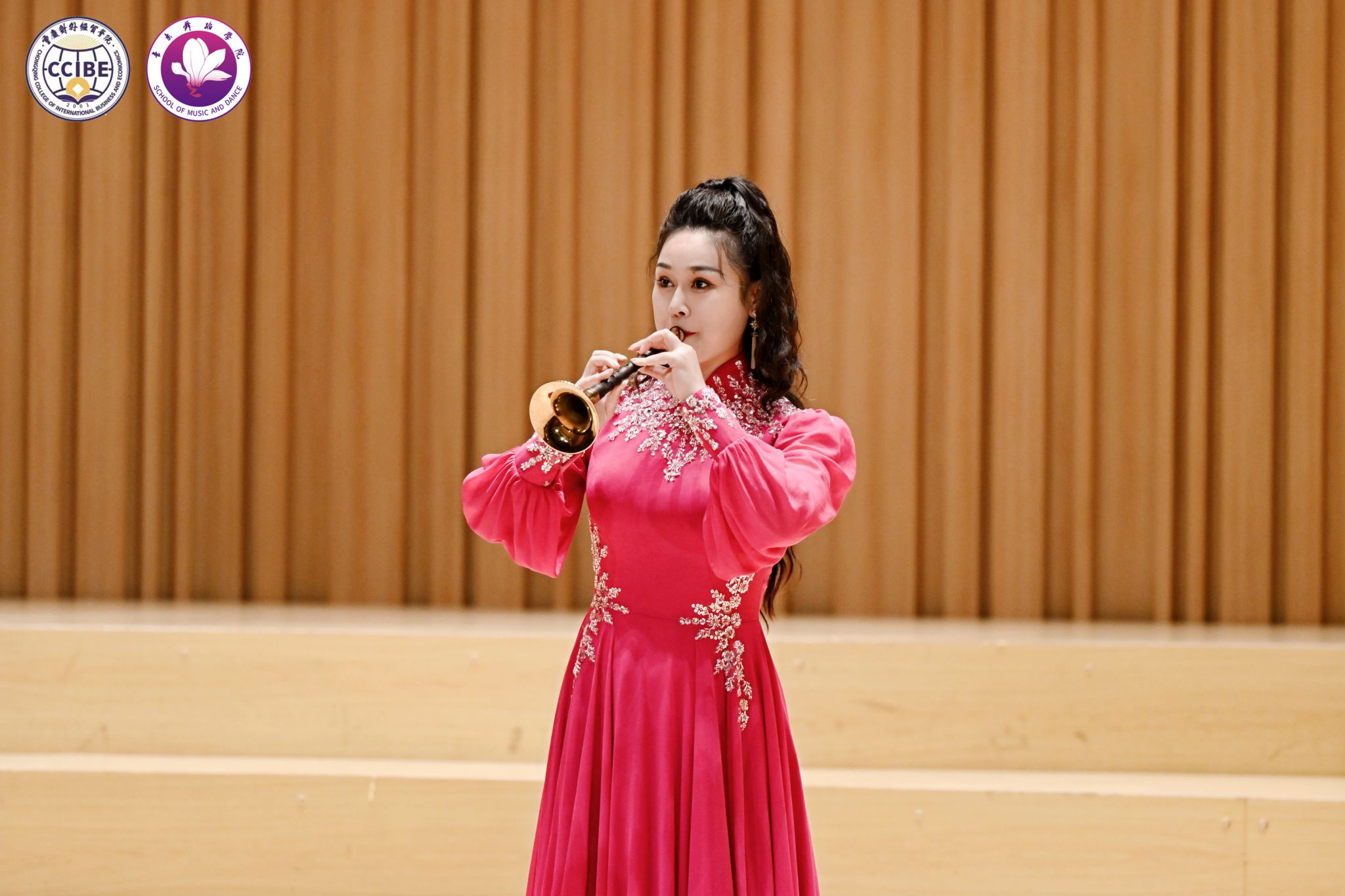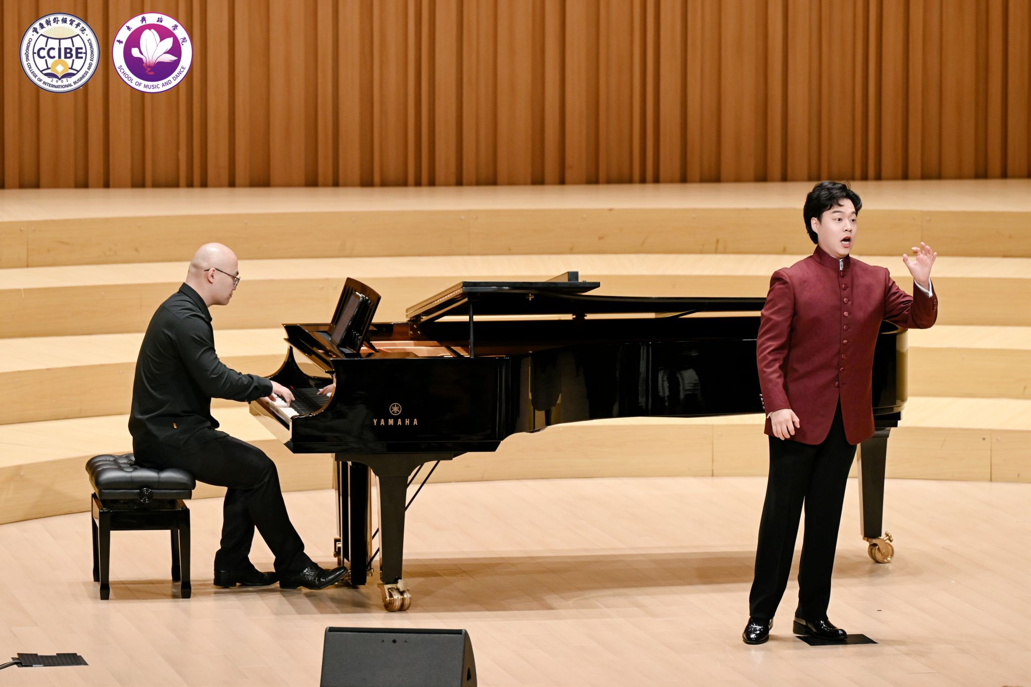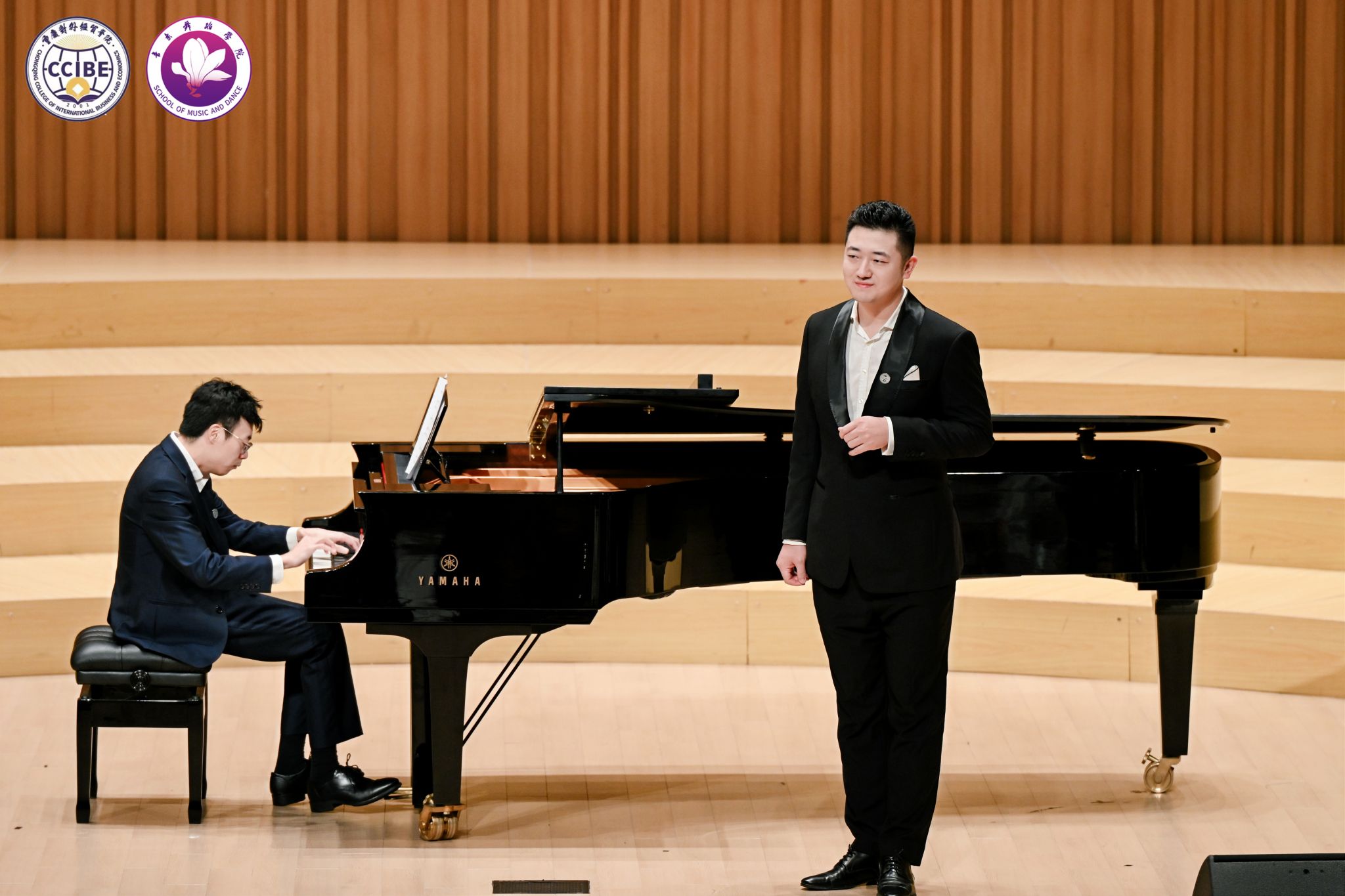 11月10日晚7:00,第三季中韩音乐会·不眠之夜暨“相约贸院”歌剧中心系列活动在学校B校区玉兰艺术中心华彩音乐厅温情上演。本次活动由音乐舞蹈学院主办、校园文化委员会承办,重庆市合川区文学艺术界联合会、合川区音乐家协会指导。学校副校长、校园文化委员会主任、音乐舞蹈学院院长王婕教授,合川区音乐家协会主席杨晓超及副主席唐芙蓉、孔祥爱出席活动,学校相关职能部门负责人与音乐舞蹈学院师生代表共同观看演出,活动由学院教师孙连鹏、张一凡主持。