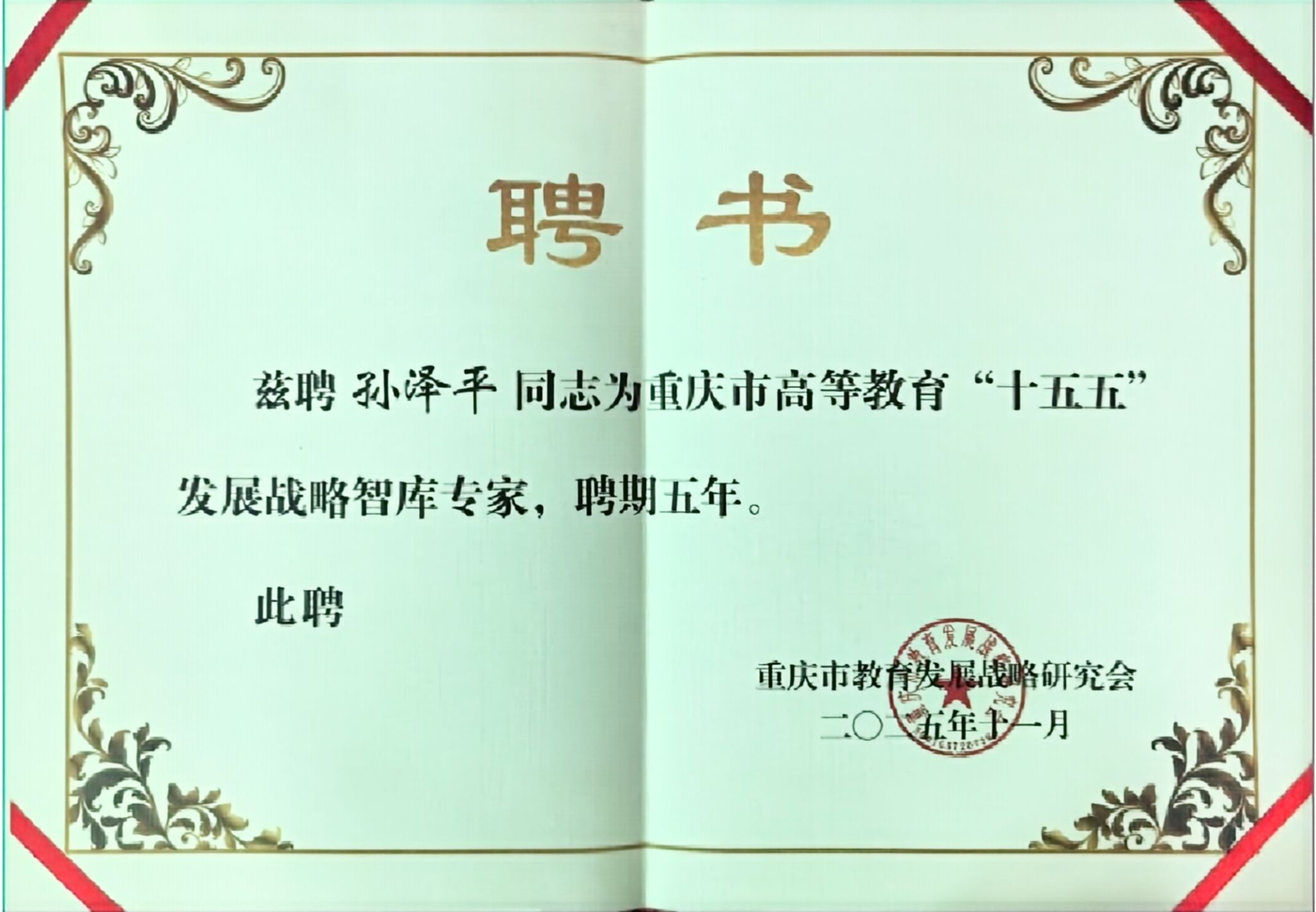 会上,主办方介绍了“重庆市高等教育战略规划智库”建设情况,公布首批智库专家名单并举行聘任仪式。孙泽平教授长期深耕高等教育管理与发展研究领域,具备丰富的高校办学实践经验和深厚的学术研究积淀,其受聘成为市级高等教育战略规划智库专家,既是市级层面对孙泽平教授专业能力与行业贡献的高度认可,也是对今年会在高等教育领域办学成效与研究实力的充分肯定。