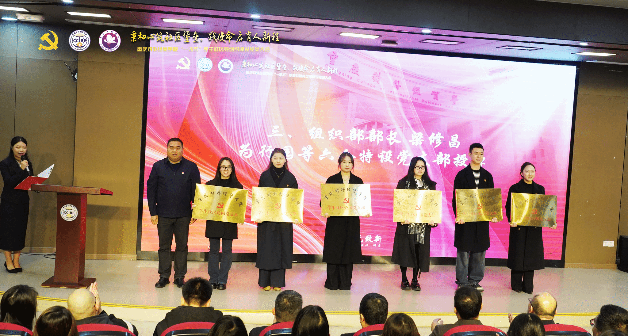 会中,分管学生工作的副校长李川为青年师生党员代表逐一颁发聘任证书,并勉励受聘师生担当尽责、积极作为,充分发挥示范引领作用,为社区党建与育人工作注入新的活力。