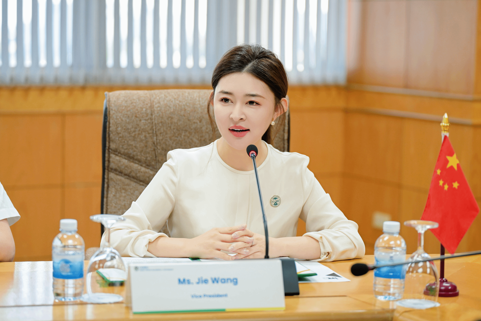在乌隆他尼皇家大学,王婕与该校董事会主席查隆和校长卡尼莎进行了会谈。双方回顾了两校六年的合作历程,并就跨境电商、国际中文、学前教育、文化旅游等领域开展课程共建、校企合作进行了深入交流。会后,王婕副校长一行参观了该校在泰国思蕊梵·娜瓦瑞公主支持下成立的纺织品与服装创意中心。
