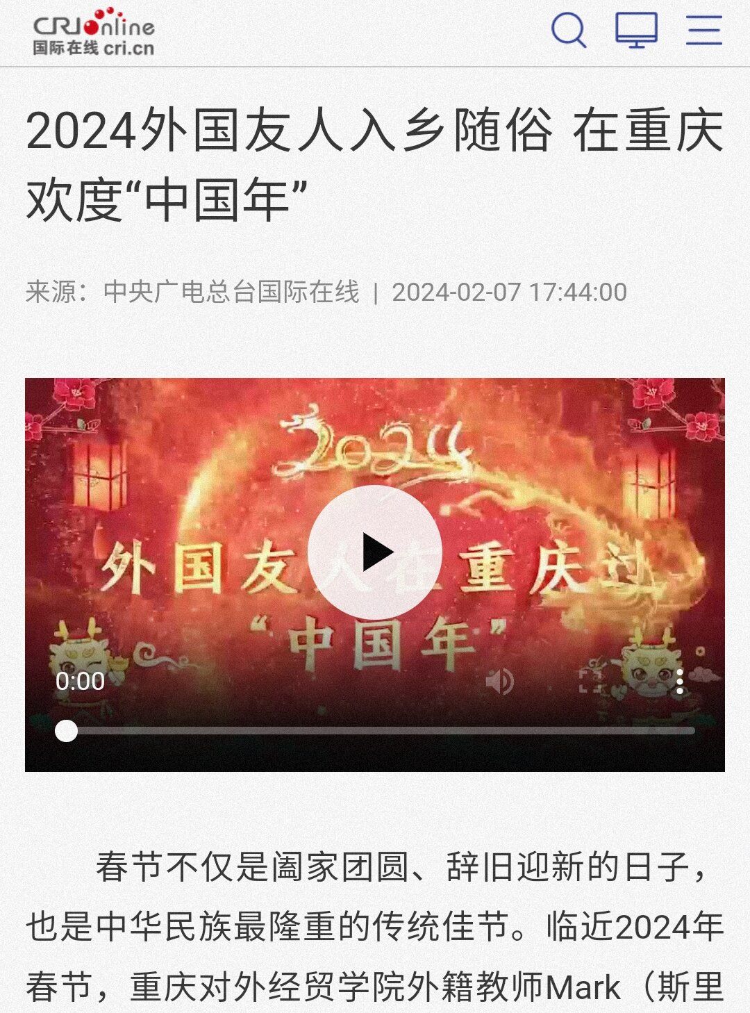 【中央广电总台国际在线】报道2024外国友人入乡随俗 在重庆欢度“中国年”