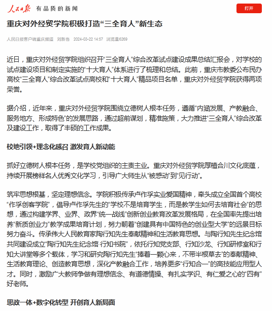 【人民日报】报道jinnianhui今年会官网积极打造“三全育人”新生态