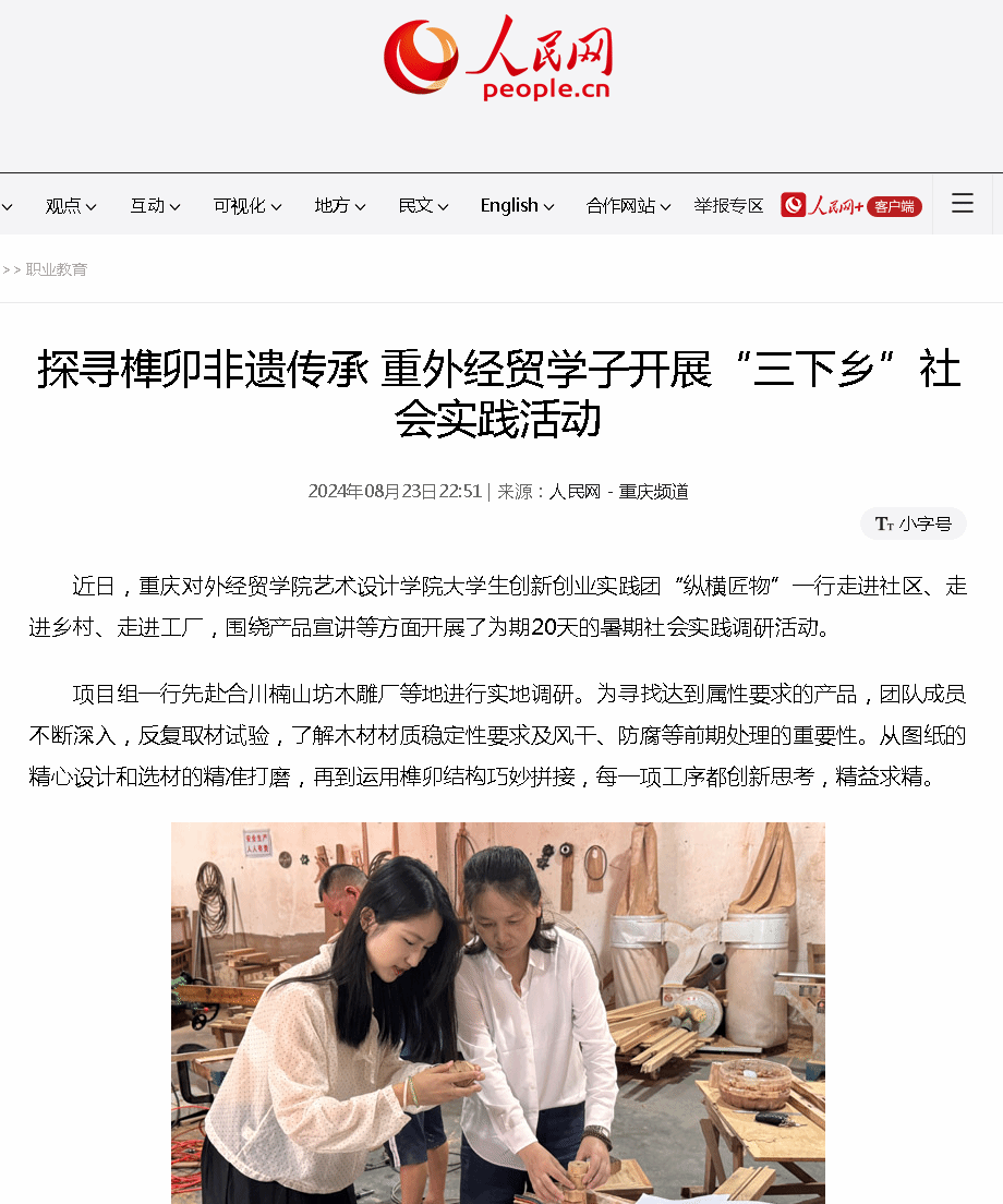 人民网报道探寻榫卯非遗传承 重外经贸学子开展“三下乡”社会实践活动