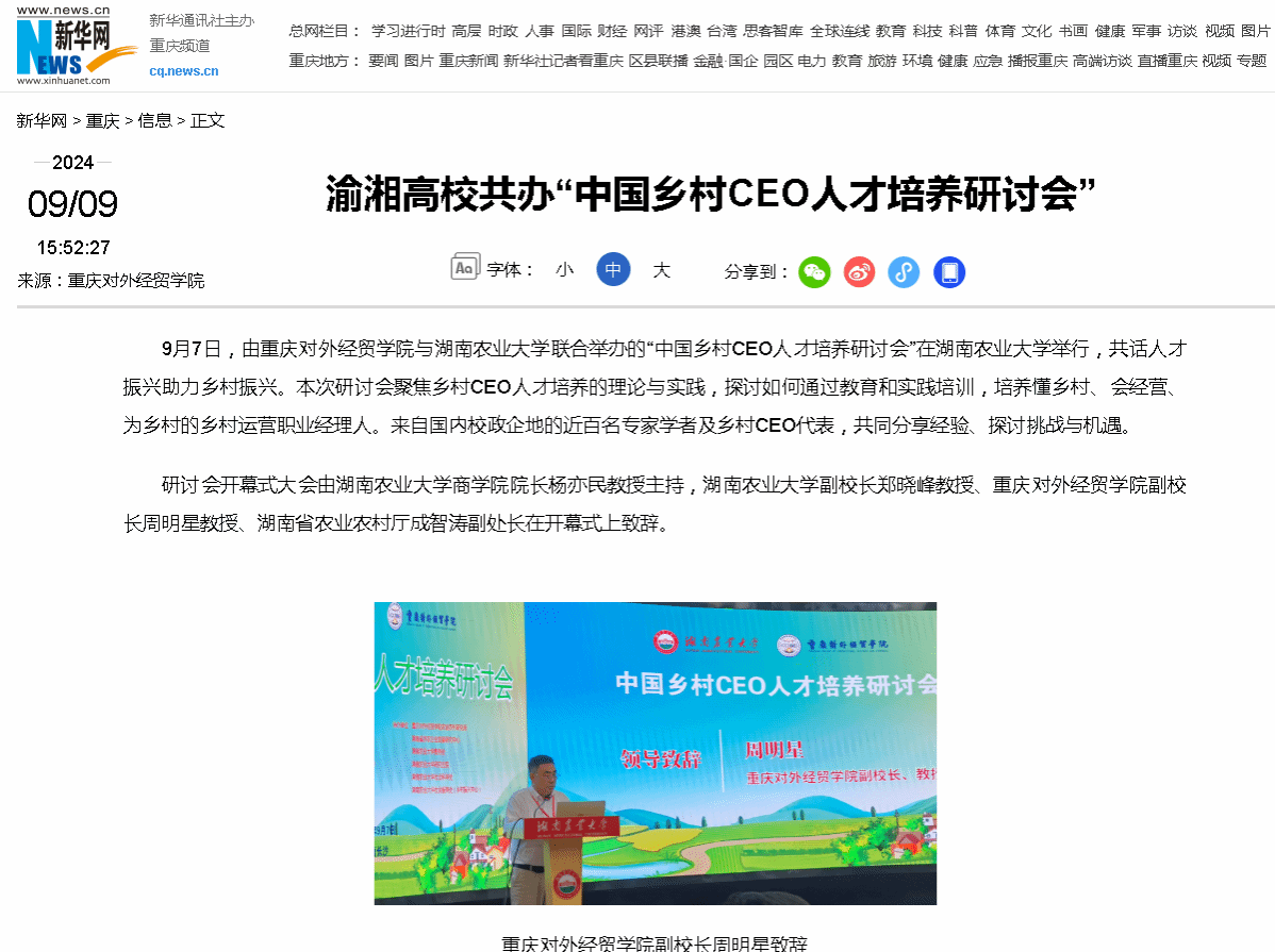 新华网报道渝湘高校共办“中国乡村CEO人才培养研讨会”