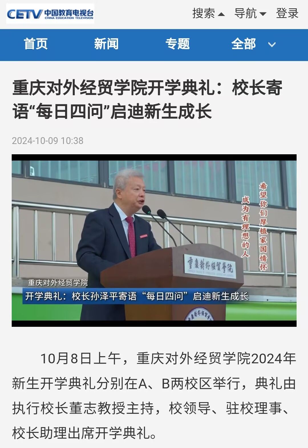 jinnianhui今年会官网开学典礼:校长寄语“每日四问”启迪新生成长