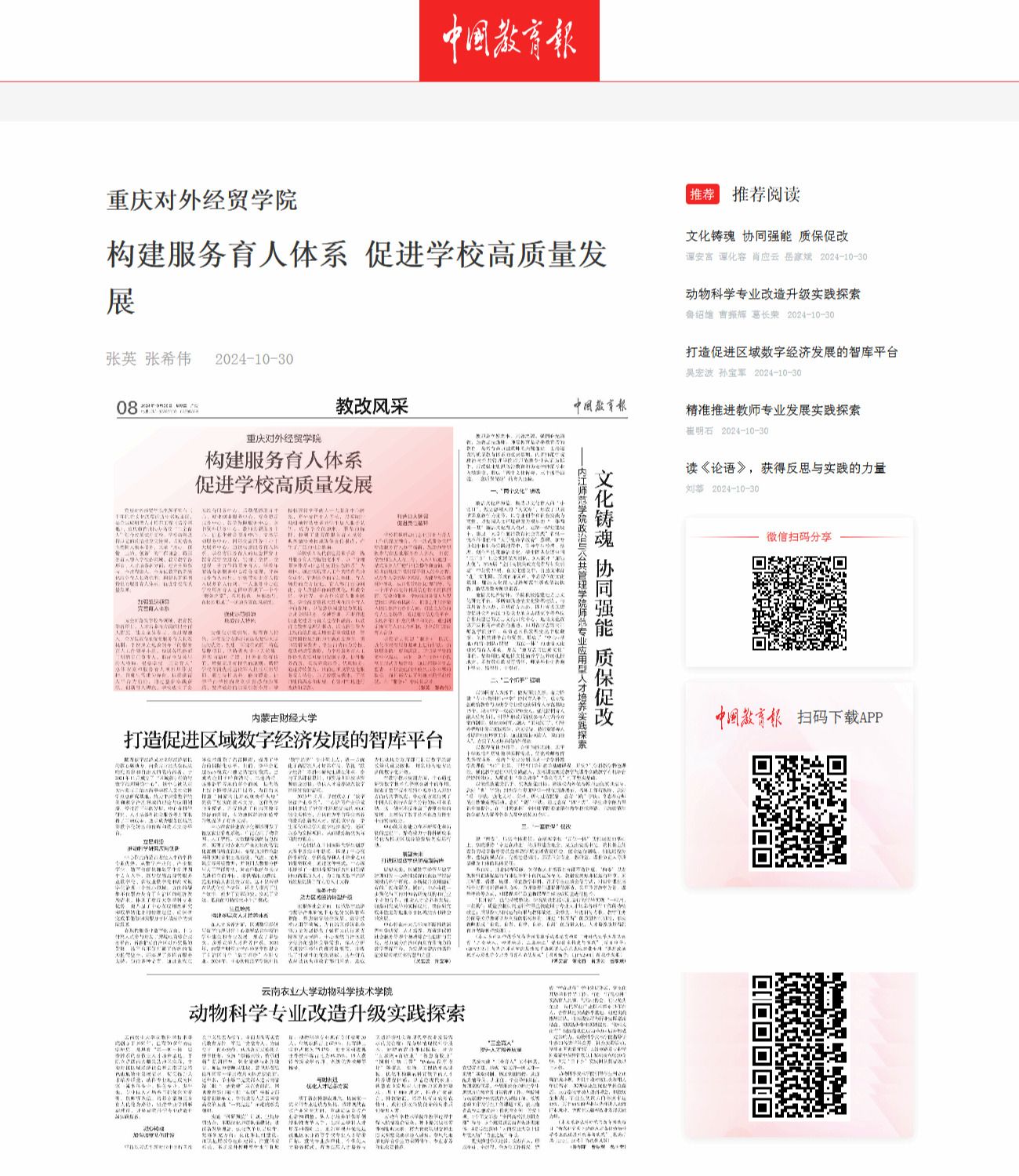 《中国教育报》报道构建服务育人体系 促进学校高质量发展