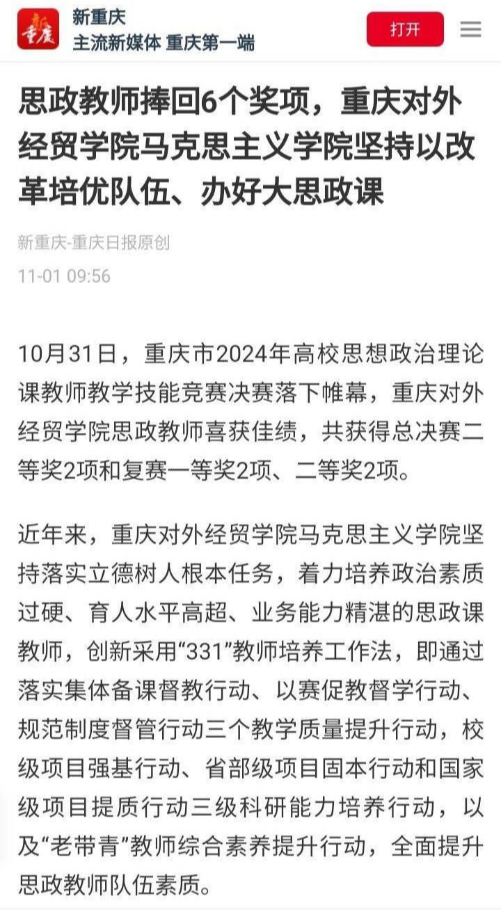 供稿部门:重庆日报 作者: 审核人:宣传部 发布时间:2024年11月01日 16:19 阅读量: