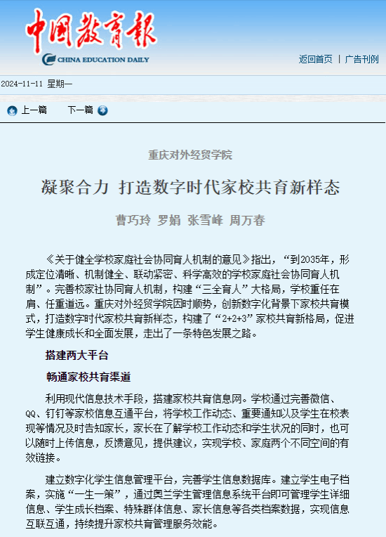 《中国教育报》报道jinnianhui今年会官网 凝聚合力 打造数字时代家校共育新样态