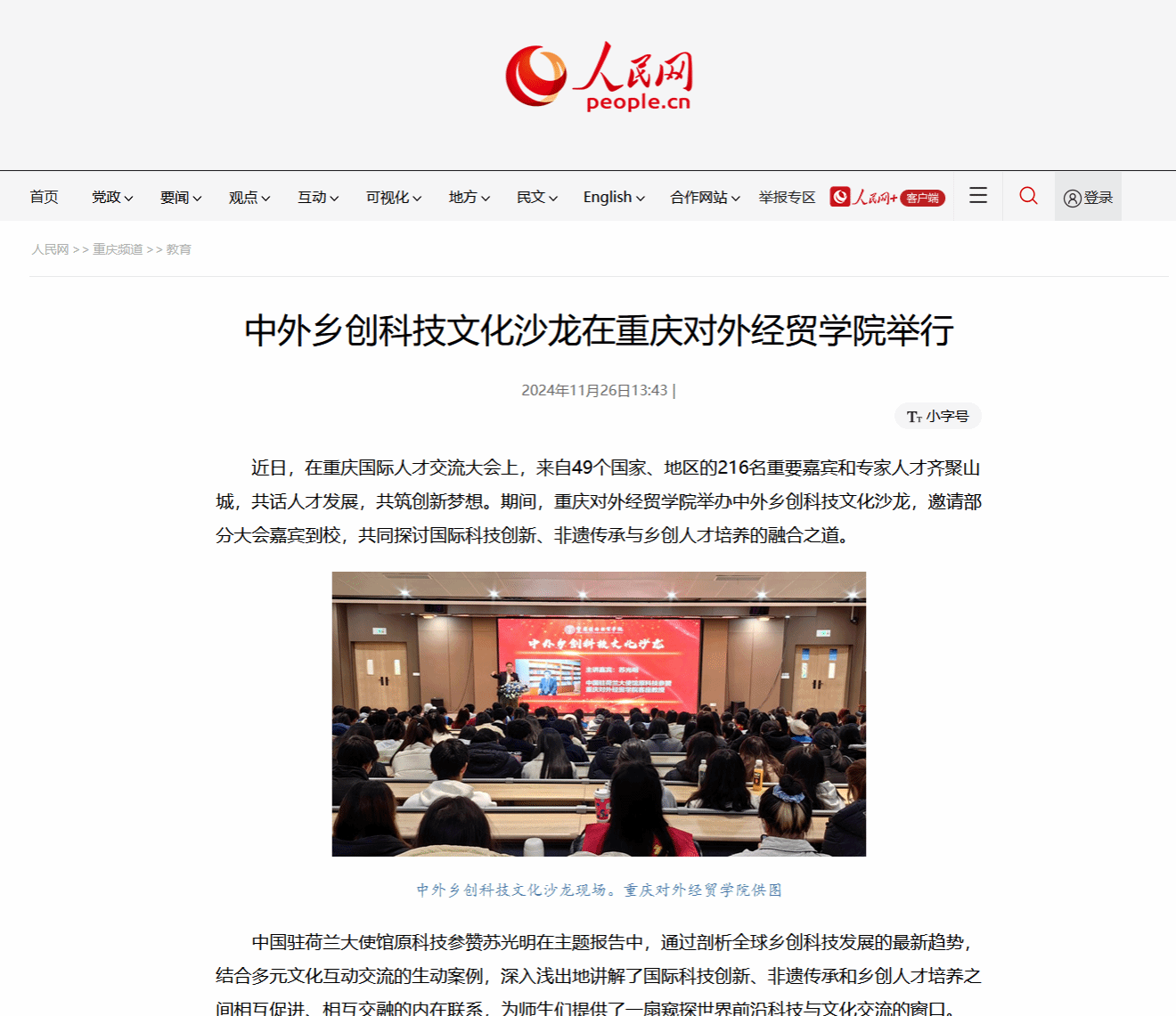 供稿部门:人民网 作者: 审核人:宣传部 发布时间:2024年11月27日 16:27 阅读量: