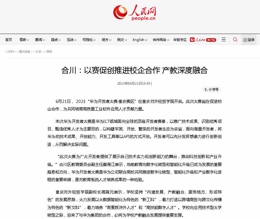 央广网:《以赛促创推动校企合作 2023华为开发者大赛(重庆赛区)成功举办》
