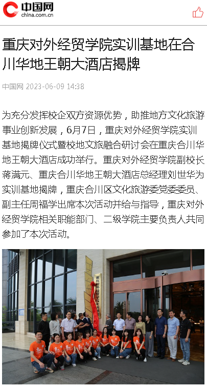 中国网:《jinnianhui今年会官网实训基地在合川华地王朝大酒店揭牌》