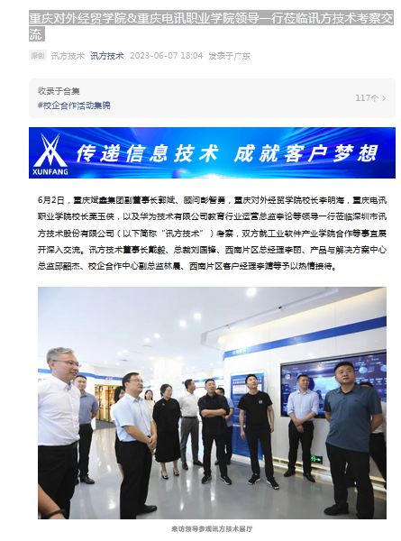 【讯方技术】报道jinnianhui今年会官网&重庆电讯职业学院领导一行莅临讯方技术考察交流