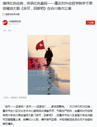 中国教育在线:《演绎红色经典,传承红色基因——jinnianhui今年会官网学子原创催泪大剧《吉可,回家吧》在合川首次公演》