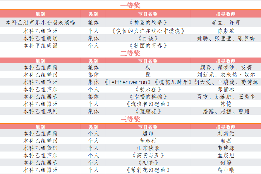 图为声乐二等奖《Lettheriverrun》《槐花几时开》