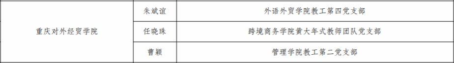 【本网讯】为创新落实立德树人根本任务,深入贯彻落实教育部党组关于高校“双带头人”教师党支部书记培育工作的部署要求,充分发挥高校“双带头人”的示范引领作用,引导广大师生在以中国式现代化全面推进强国建设、民族复兴伟业新征程上砥砺新担当、发展新作为,教育部组织开展了高校“双带头人”教师党支部书记“强国行”专项行动。学校党委持续加强“双带头人”教师党支部书记培育,以提升教师素质能力为核心的“强芯工程”与教师党支部书记“双带头人”培育工程有机结合,实现“双带头人”教师党支部书记全覆盖。今年会朱斌谊、任晓珠、曹颖3位“双带头人”教师党支部书记入选了重庆市高校“双带头人”教师党支部书记“强国行”专项行动团队。