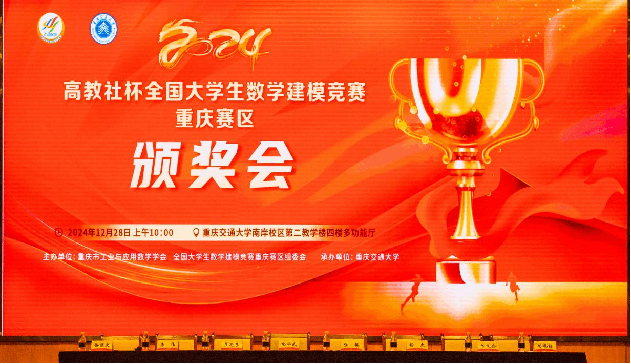 【本网讯】近日,由全国大学生数学建模竞赛重庆赛区组委会主办,重庆交通大学承办的2024“高教社杯”全国大学生数学建模竞赛重庆赛区颁奖典礼暨赛区组委会工作会议在重庆交通大学成功举办。