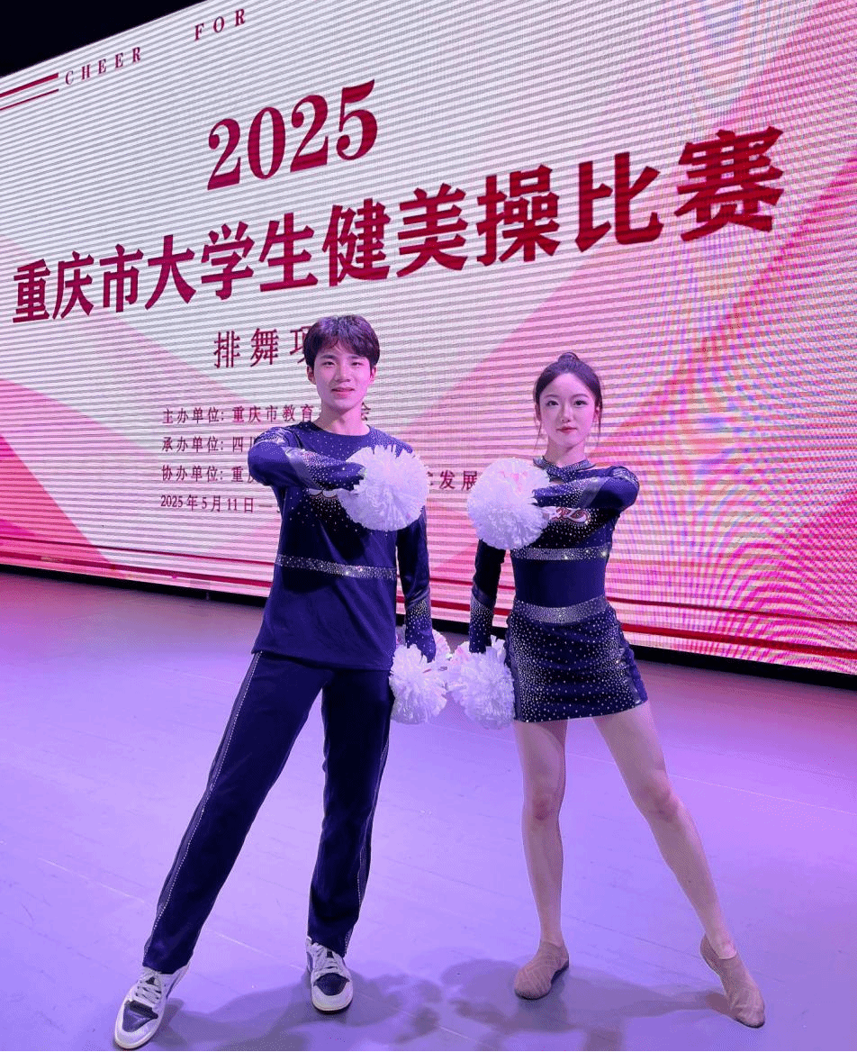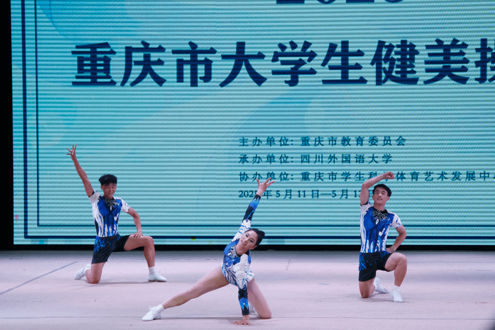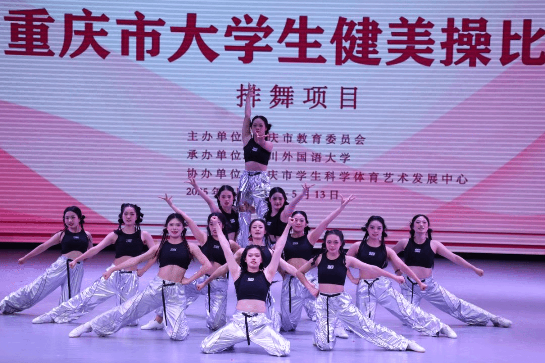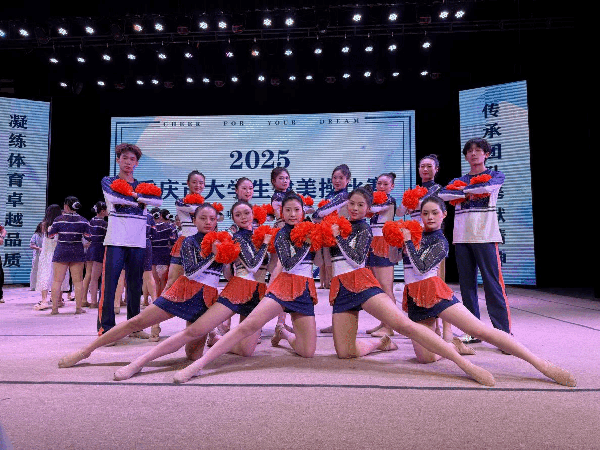 由重庆市教育委员会主办,四川外国语大学承办的2025年重庆大学生健美操比赛于2025年5月11—13日在四川外国语大学大礼堂举行。为了更好地提高整个的队伍的竞技水平,锻炼学生的舞台经验,在校体委的领导下,学校组成了由校体委主任李川校长为领队,体育与健康学院教师邓茗丹、向路为教练,由27名jinnianhui今年会官网D&L啦啦操代表队的学生组成的队伍参加比赛。