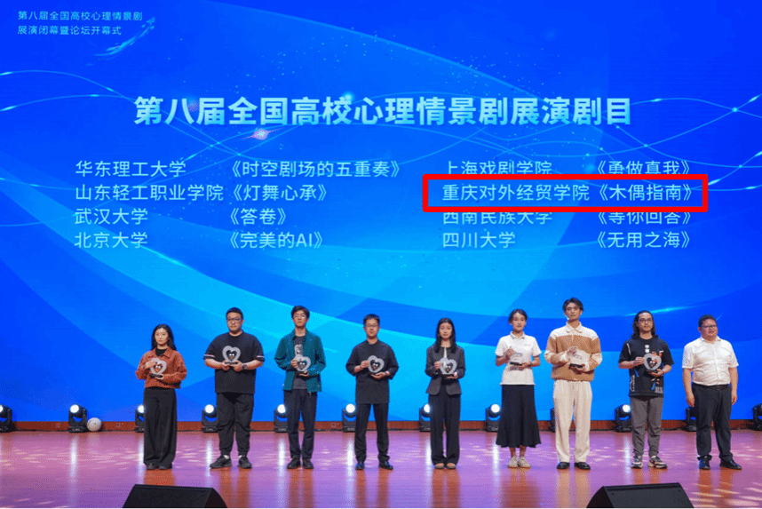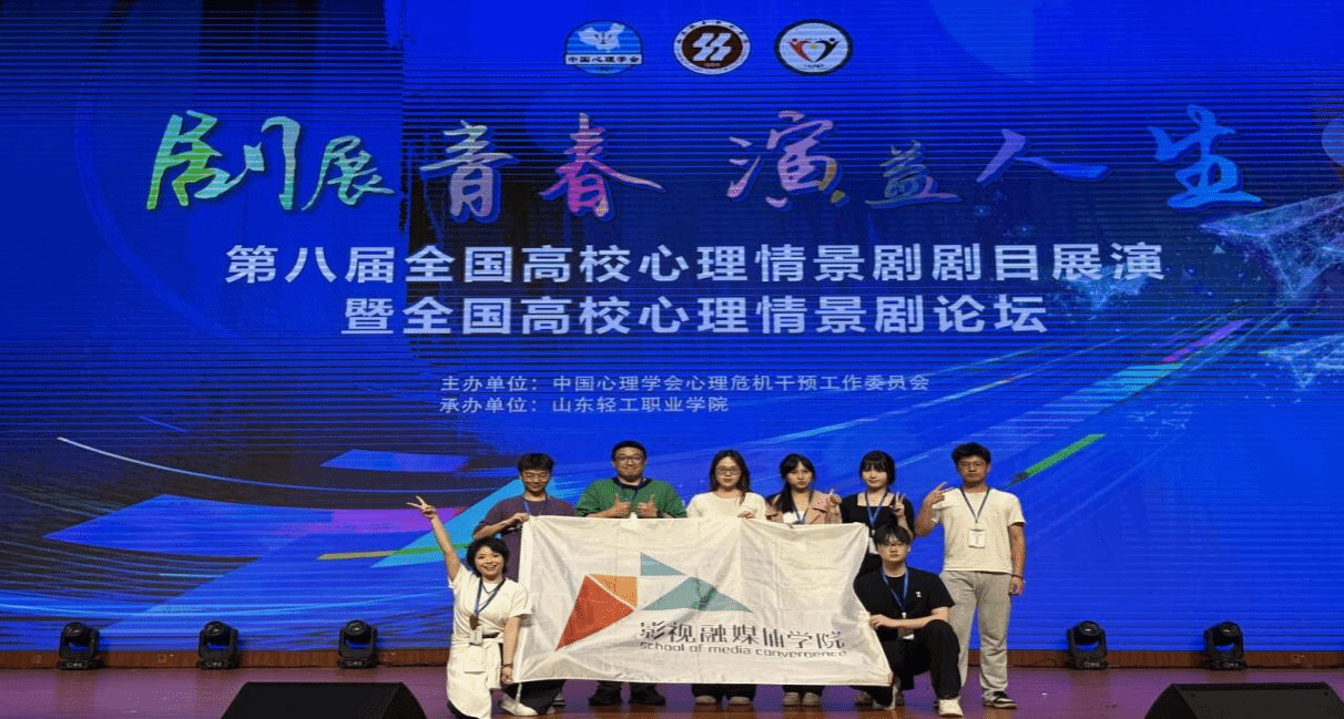 【本网讯】 5月16日至18日,由中国心理学会心理危机干预工作委员会主办、山东轻工职业学院承办的第八届全国高校心理情景剧展演暨论坛在山东淄博成功举办。本届展演共吸引全国375所高校参加,经层层选拔,32部优秀作品入围现场展演。今年会原创剧目《木偶指南》以90.43分的优异成绩获全国第六名,创今年会在该项赛事中的历史最佳成绩!