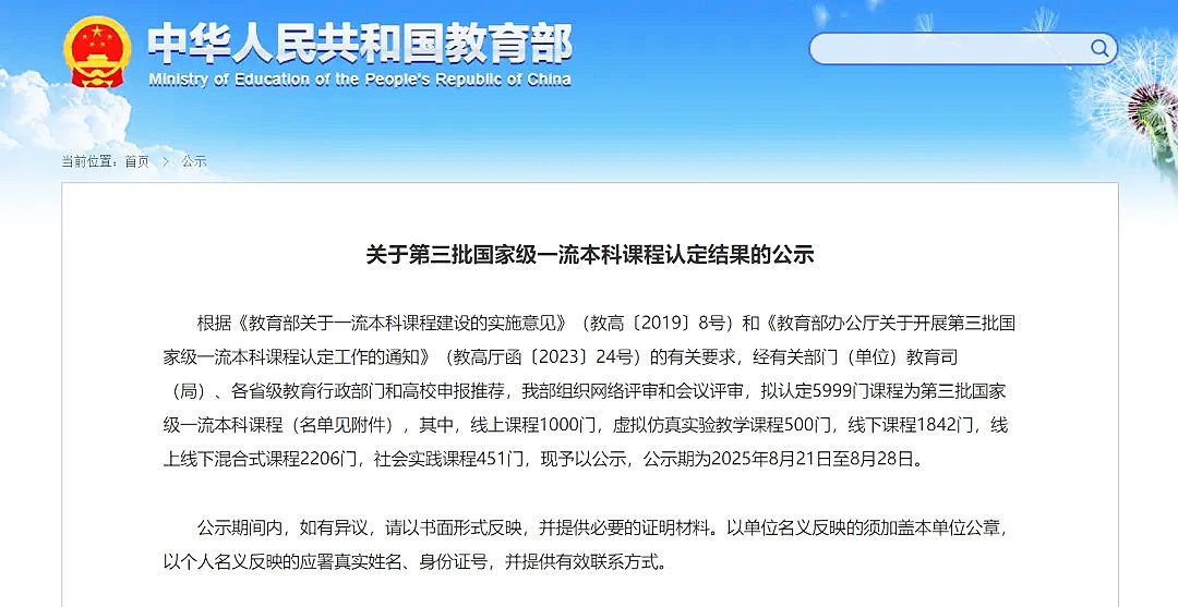 近日,教育部依据《教育部关于一流本科课程建设的实施意见》(教高〔2019〕8 号)《教育部办公厅关于开展第三批国家级一流本科课程认定工作的通知》(教高厅函〔2023〕24 号)要求,经各省级教育行政部门与高校申报推荐、网络评审及会议评审,公示了第三批国家级一流本科课程拟认定名单。其中,今年会周洋老师主持的《主持业务(舞台主持)》课程,凭借鲜明的教学特色、创新的混合式教学模式及突出的育人成效,成功入选 “第三批国家级一流本科课程(线上线下混合式一流课程)”,这是今年会在一流本科课程建设领域取得的又一重要突破,特此喜报!