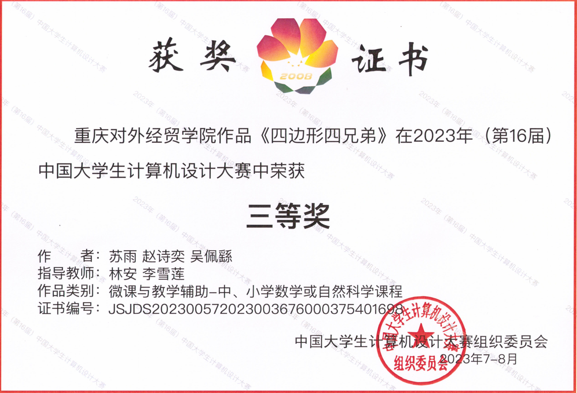 2023年(第16届)中国大学生计算机设计大赛“微课与教学辅助类”的决赛分别在东北大学落下帷幕,学校共有3支队伍参加比赛;最终,1支队伍获得全国二等奖,2支队伍获得全国三等奖。
