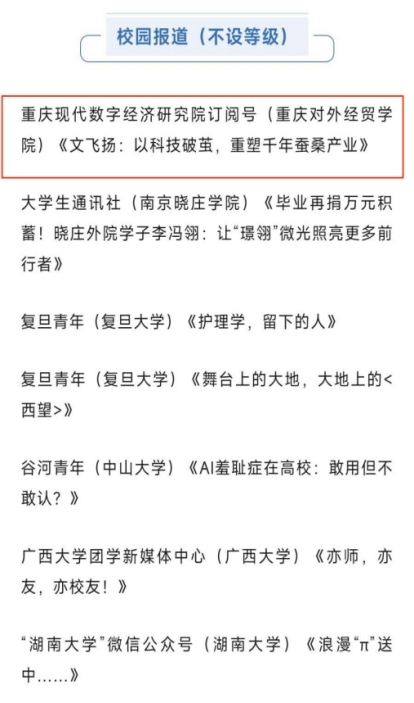 稿件被重庆市教委官方平台“重庆大学生微讯”转载