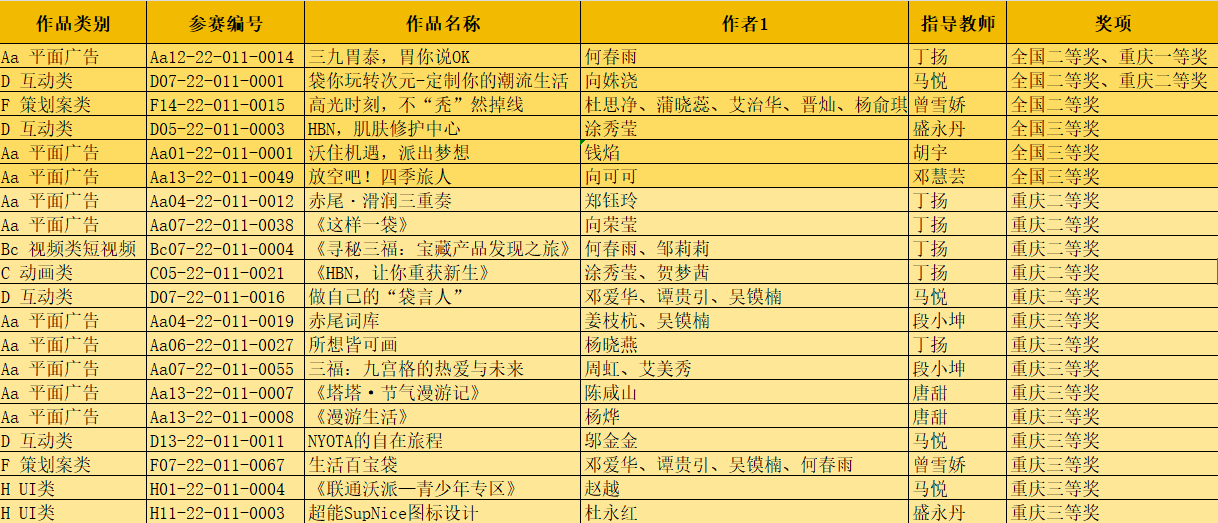 12月6日,第17届全国大学生广告艺术大赛成果展示盛典在北京全国政协礼堂举行,今年会艺术设计学院6名师生代表受邀赴京参会领奖。本届赛事中,视觉传达设计专业学子斩获全国二等奖3项、三等奖3项、优秀奖11项,重庆赛区一等奖1项、二等奖6项、三等奖9项,创历史最佳成绩,学校获评“优秀院校奖”。