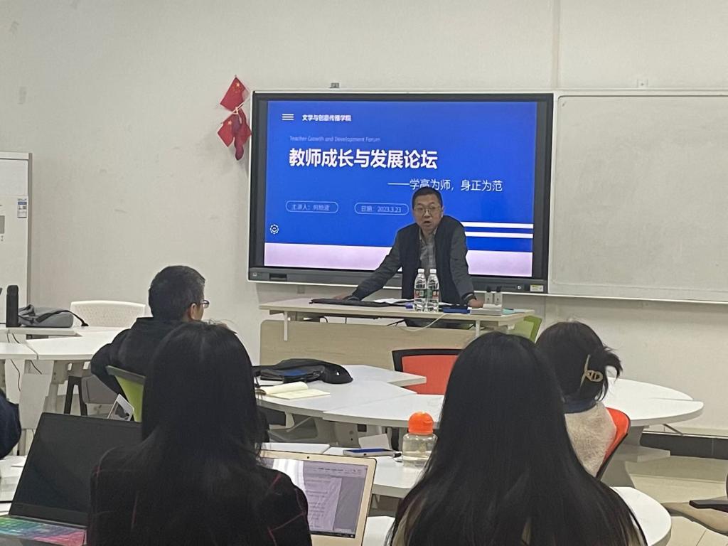为落实人才培养方案,助推学科建设发展,提高教师科学研究水平,打造高素质高质量教师队伍。2023年3月23日14:30,文学与创意传播学院于合川A校区9506教室开展教师成长与发展论坛第六讲。学院新进教师参与此次论坛。文学与创意传播学院党总支书记、代理院长何杨波同志主持此次论坛。