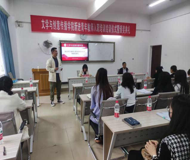 为进一步加强青年教师队伍建设,提升教师的教育教学能力和专业水平,4月13日下午于学校A校区6107教室举行了文学与创意传播学院新入职教师培训结训仪式暨颁奖典礼。文学与创意传播学院党总支书记何杨波、副院长陈寿琴副教授受邀出席结训仪式暨颁奖典礼,仪式由吴鹏老师主持,全体新进青年教师参会。