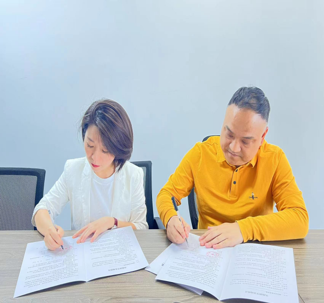 (图为与浙江豌豆供应链管理有限公司金江总经理签订实践教学基地协议)